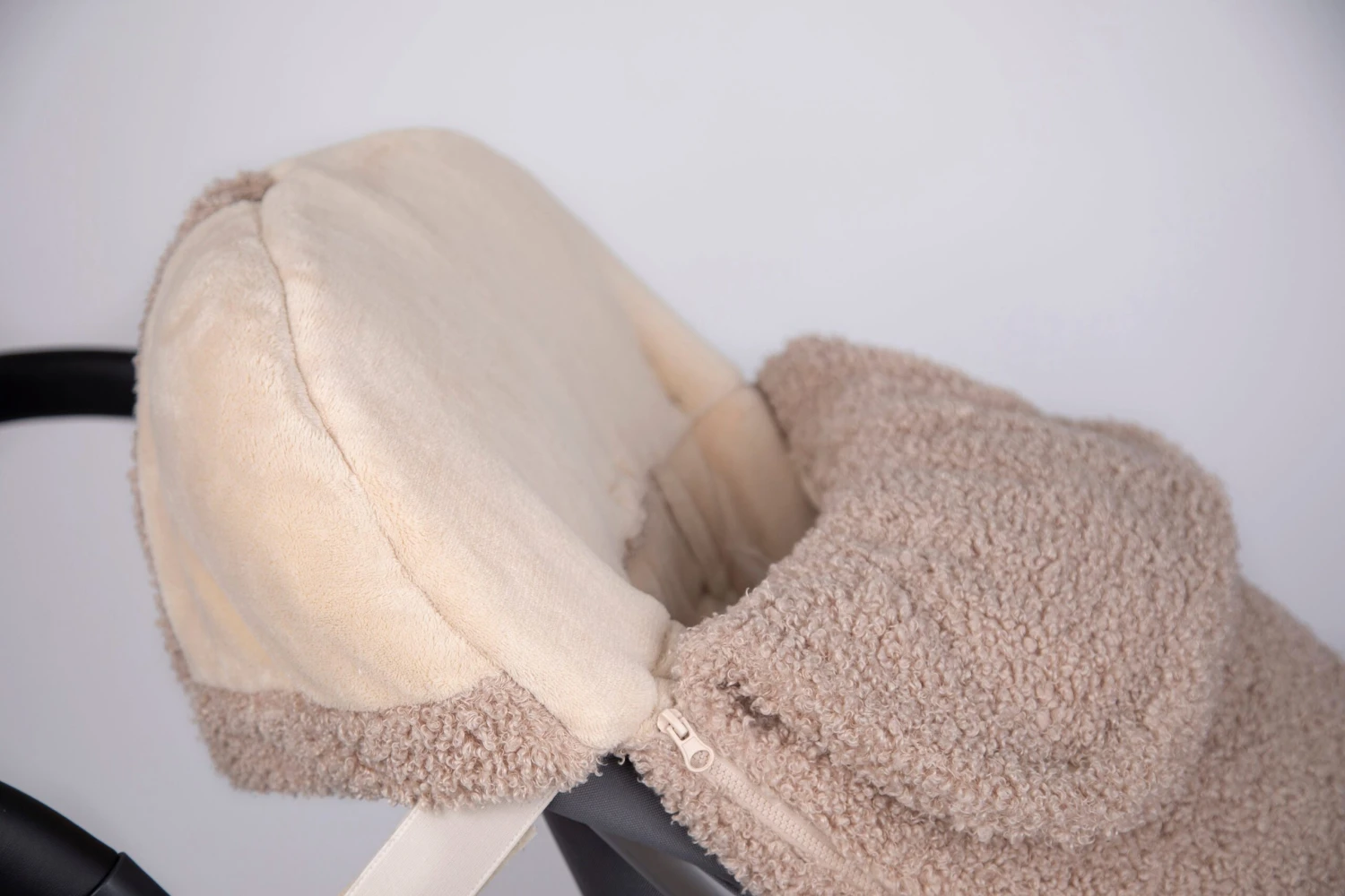 - Side flaps can connect to the hood to further envelop your child’s head.