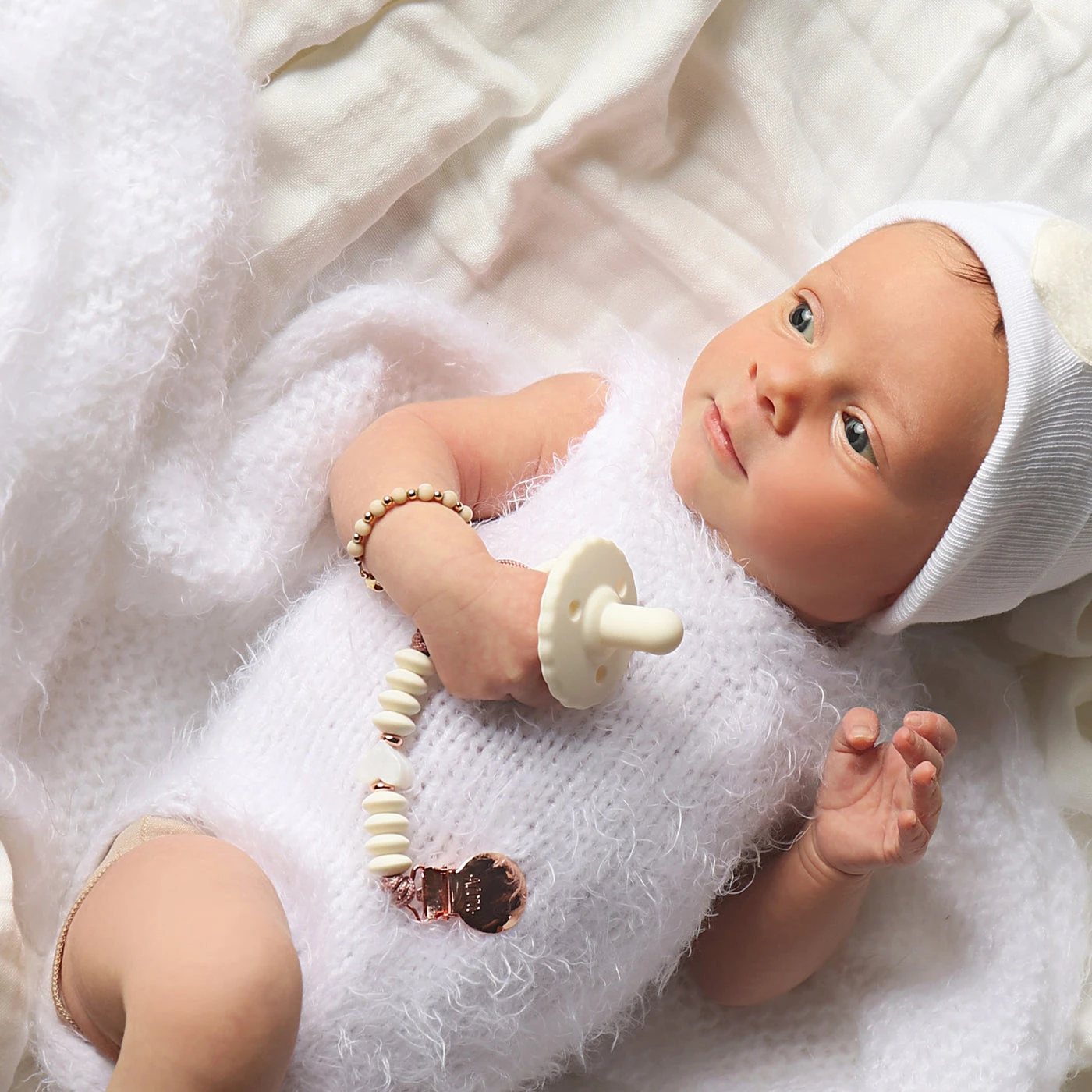 The Adora Classic Pacifier’s soft nipple gently mimics breastfeeding for natural palate development and feels good on the baby. The nipple shape is soft and durable, making it ideal for newborns and up. The Adora pacifier is both timeless and elegant!
