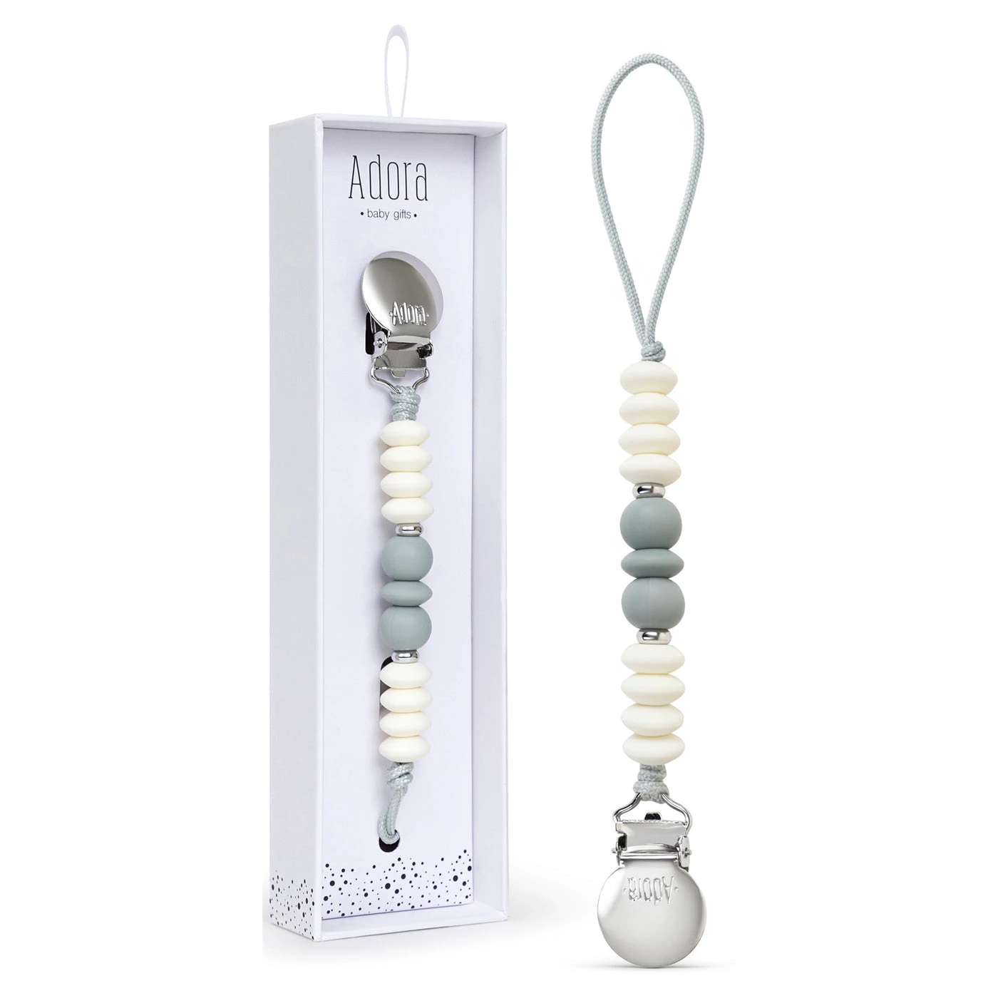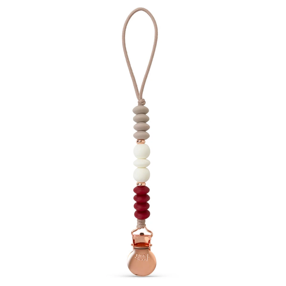 The Adora Pacifier Clip is expertly designed with your child in mind. It’s short and light enough to accessorize without discomfort or choking risks. The custom-made beads are washable and food-grade material so they’re safe for playing, teething, and growing.