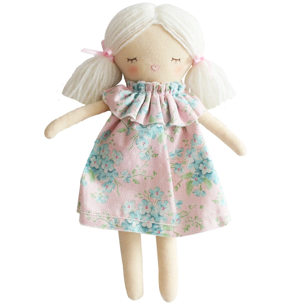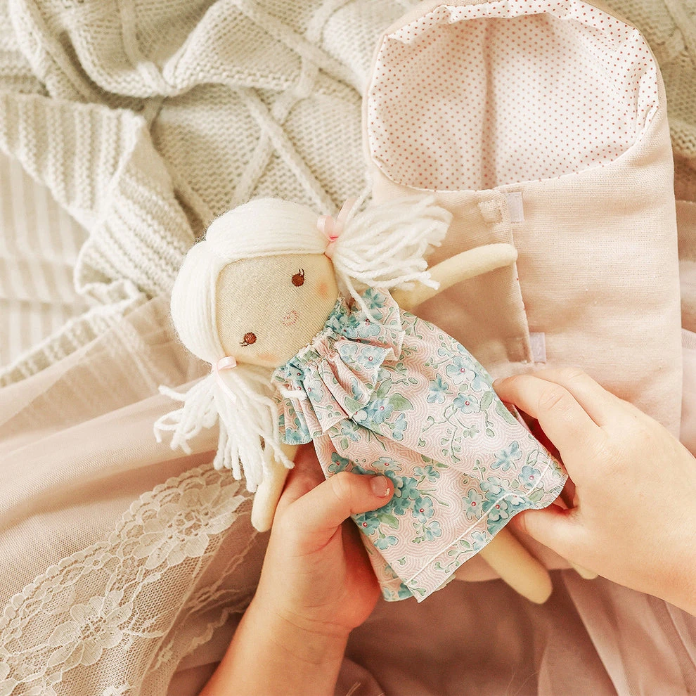 Alimrose Mini Matilda Asleep Awake Doll is an adorable doll with asleep eyes on one side and awake eyes on the reverse. The dress is removable, encouraging developmental play. Playing with dolls helps foster a child’s imagination as they encounter creative & imagined scenarios. This kind play encourages children to develop social skills and teaches them how to process emotions such as empathy & compassion. By taking care of their doll they learn how to take care of themselves and others.