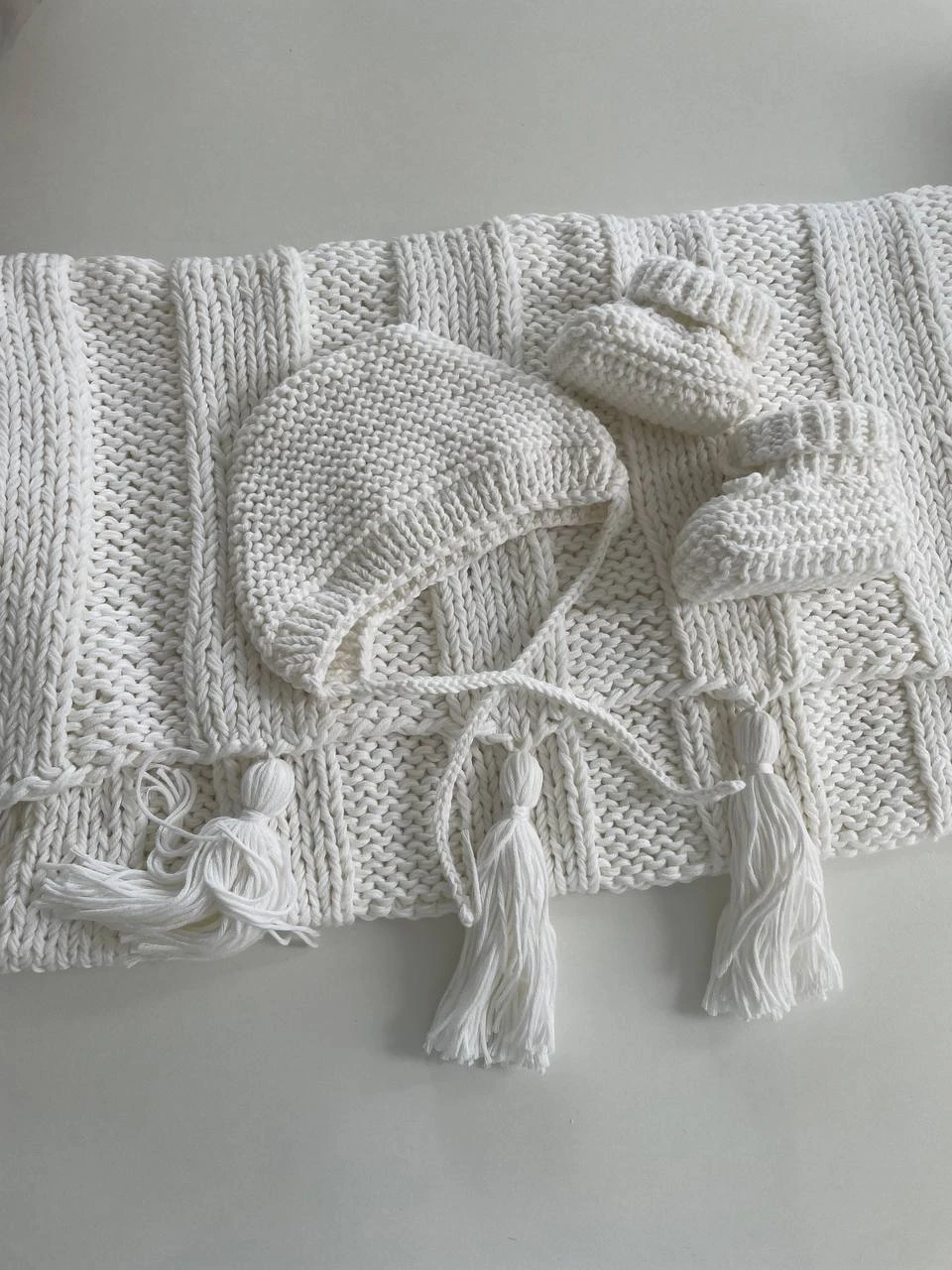 The Anzy Home Summer Boho Knitted Blanket has a luxurious, soft texture and a stylish look. Featuring a charming knit pattern and adorable tassels, it’s perfect for Boho or Scandinavian-style nurseries. Additionally, it comes with a cute matching bonnet and booties, making it perfect for both indoor use and outdoor adventures.