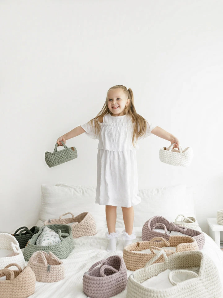 The Anzy Home Doll Moses Basket, designed with care and quality in mind, is a versatile piece that serves as both a functional plush toy and doll carrier, as well as a chic decor item for a child’s room. With its round hood, this delightful and stylish basket makes a great addition to any collection for children aged between 2 to 7 years old.