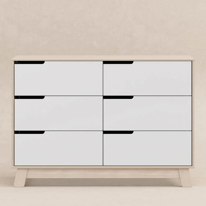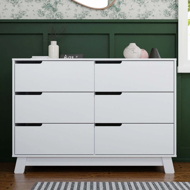 The Babyletto Hudson 6-drawer Double Dresser is designed with spacious smooth-glide drawers to keep your baby’s wardrobe neat and organized. The Hudson’s versatile design complements modern nurseries and pairs perfectly with the Hudson 3-in-1 Convertible Crib with matching turned-out feet.