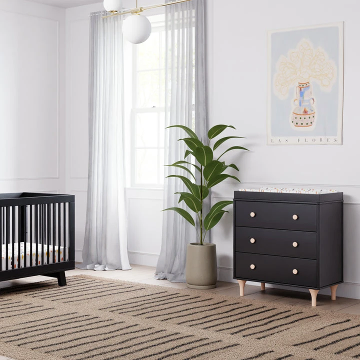 - Modern nursery essential complementing the Lolly 3-in-1 Convertible Crib with natural curves and contrasting features.