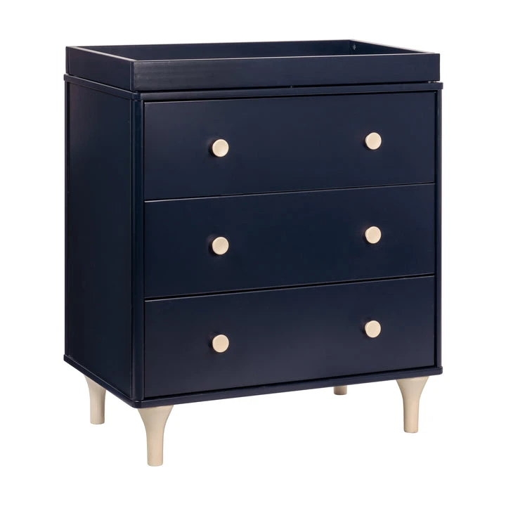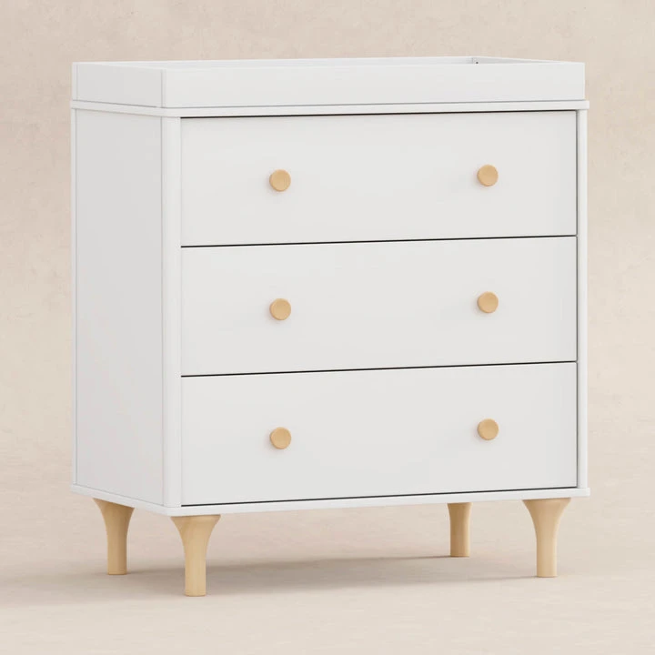 The Babyletto Lolly 3-Drawer Changer Dresser boasts a contemporary and whimsical design. Its gentle curves and delicate natural feet perfectly complement the Lolly 3-in-1 Convertible Crib. This dresser is thoughtfully designed for use in the nursery, with a removable changing tray, smooth-glide drawers, hidden hardware, and an anti-tip kit included for added safety.