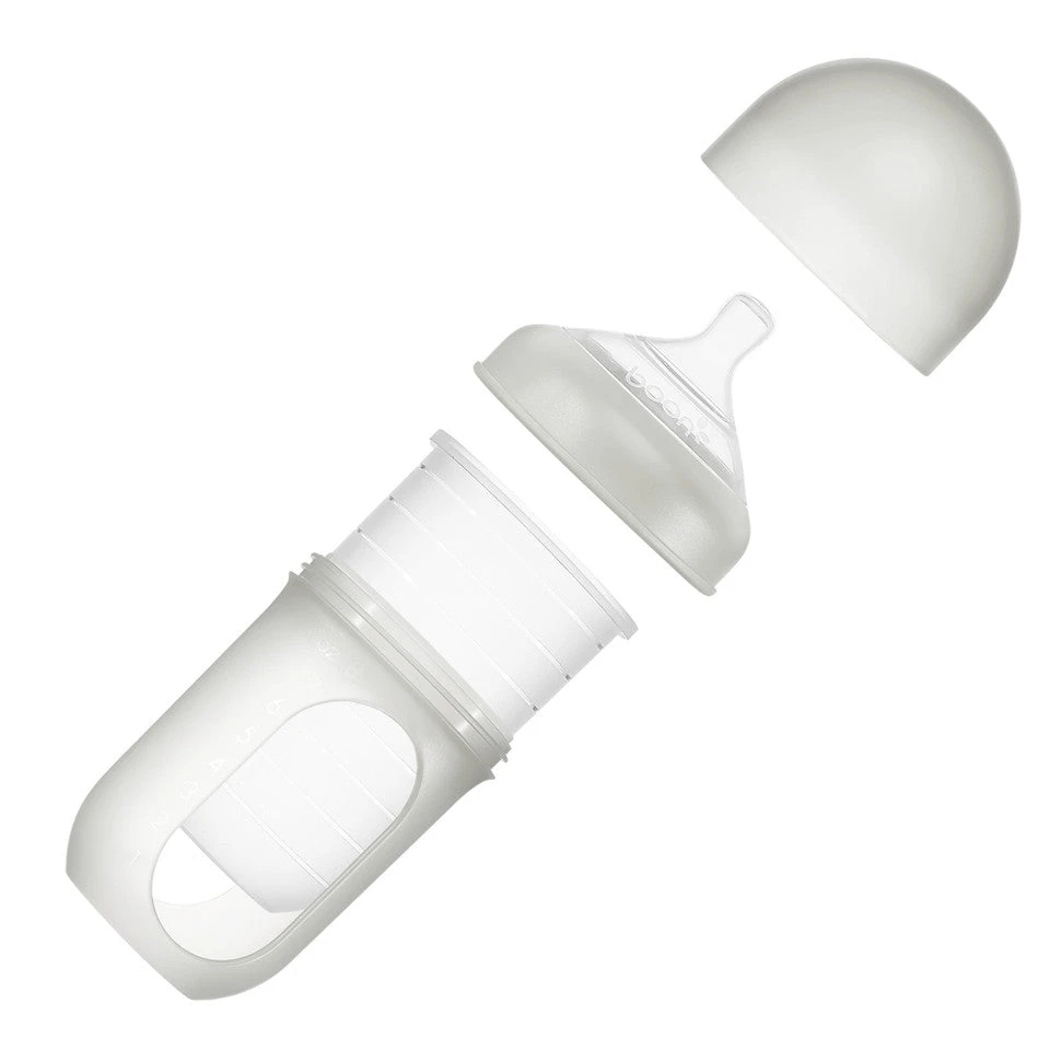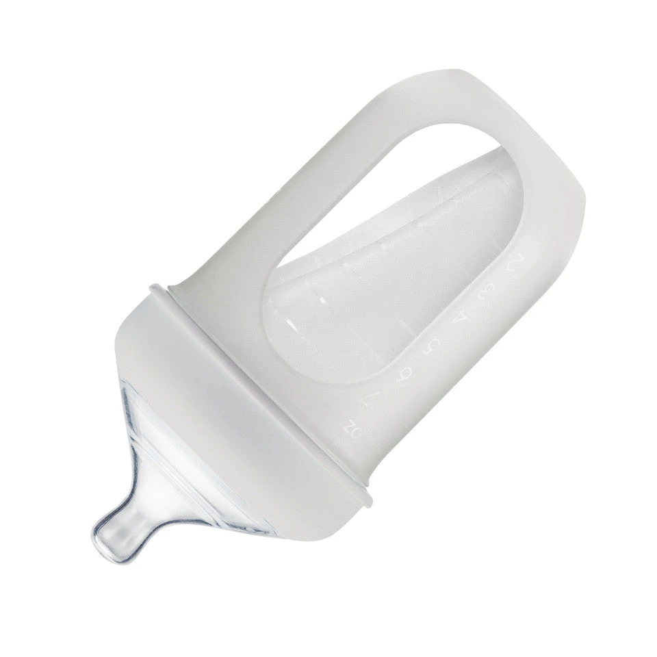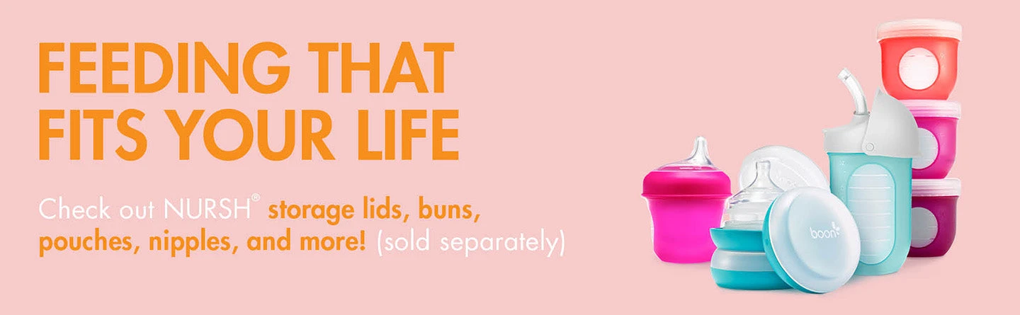 The Boon NURSH Collapsible Silicone Pouch features a revolutionary air-free feeding design with a 100% silicone pouch that collapses as your little one drinks, helping to prevent colic symptoms like gas and spit-up. The pouch collapses as the baby drinks, mimicking breastfeeding with no added air. As a bonus, no vents or valves make it a snap to clean and assemble. The optimal nipple shape and length are easy for baby to latch on to, and the patented design ensures milk never touches plastic, only platinum food-safe silicone.