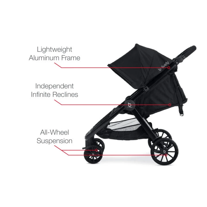 Cruising smooth is twice the fun with the B-Lively Double stroller, featuring all-wheel suspension and a lightweight design. There’s room for double the baby gear in the extra large under-seat storage basket with convenient dual front access. The quick fold makes it easy to close the stroller and stand it upright for storage. Plus, it’s infant car seat compatible when paired with an infant car seat adapter kit (sold separately).