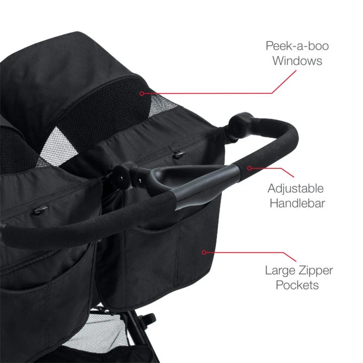 - Large, independent canopies with ventilation windows keep both babies cool while cruising.