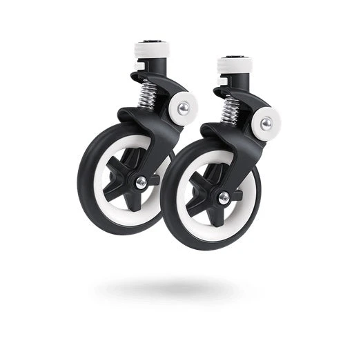 This item contains 2 x front wheels with the front wheel fork attached for the Bugaboo Bee 3 stroller.