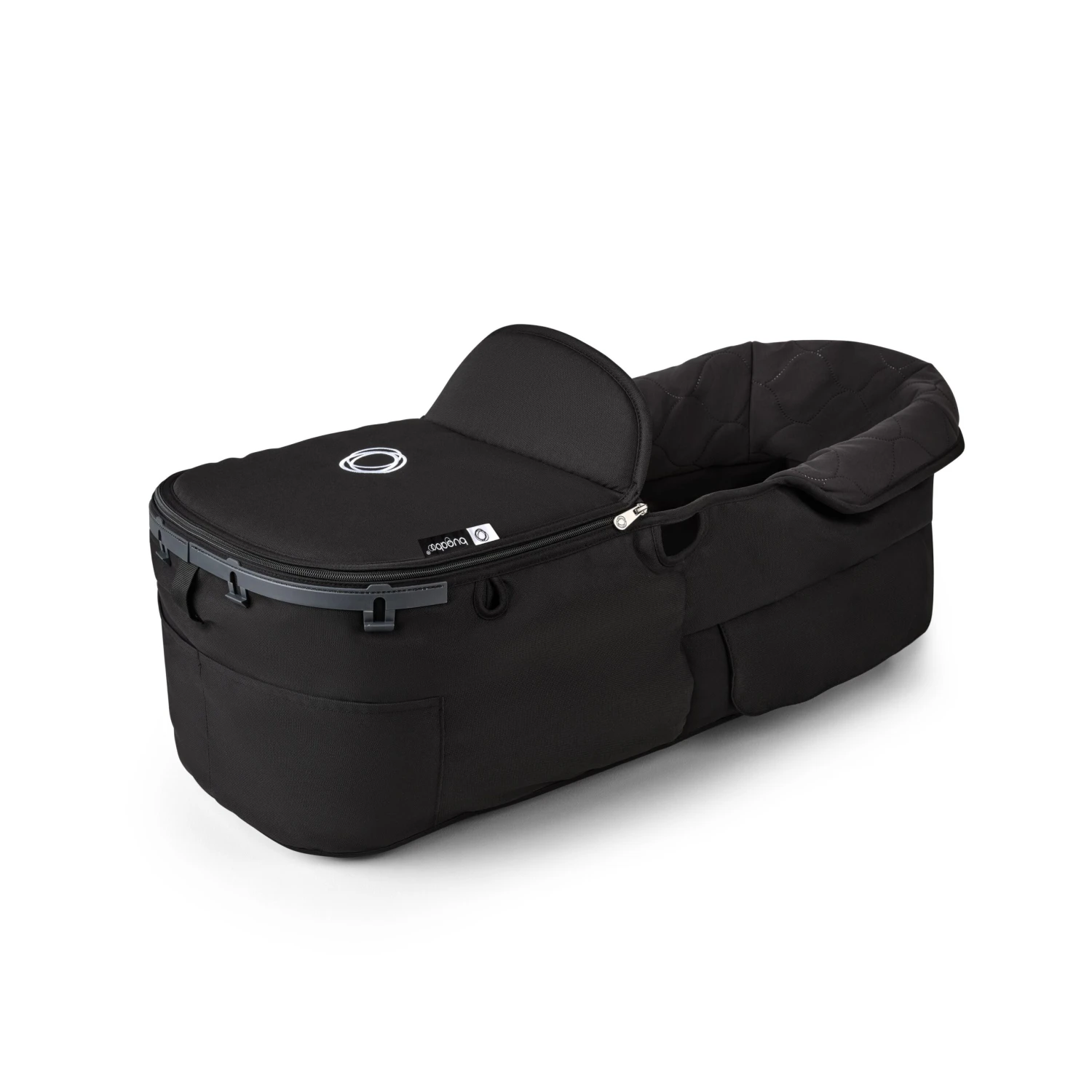 The Bugaboo Kangaroo Bassinet Fabric Set includes the fabric and apron, providing a snug and cozy spot for your baby while strolling. It promotes peaceful sleep for your little one and adds extra protection from the elements.