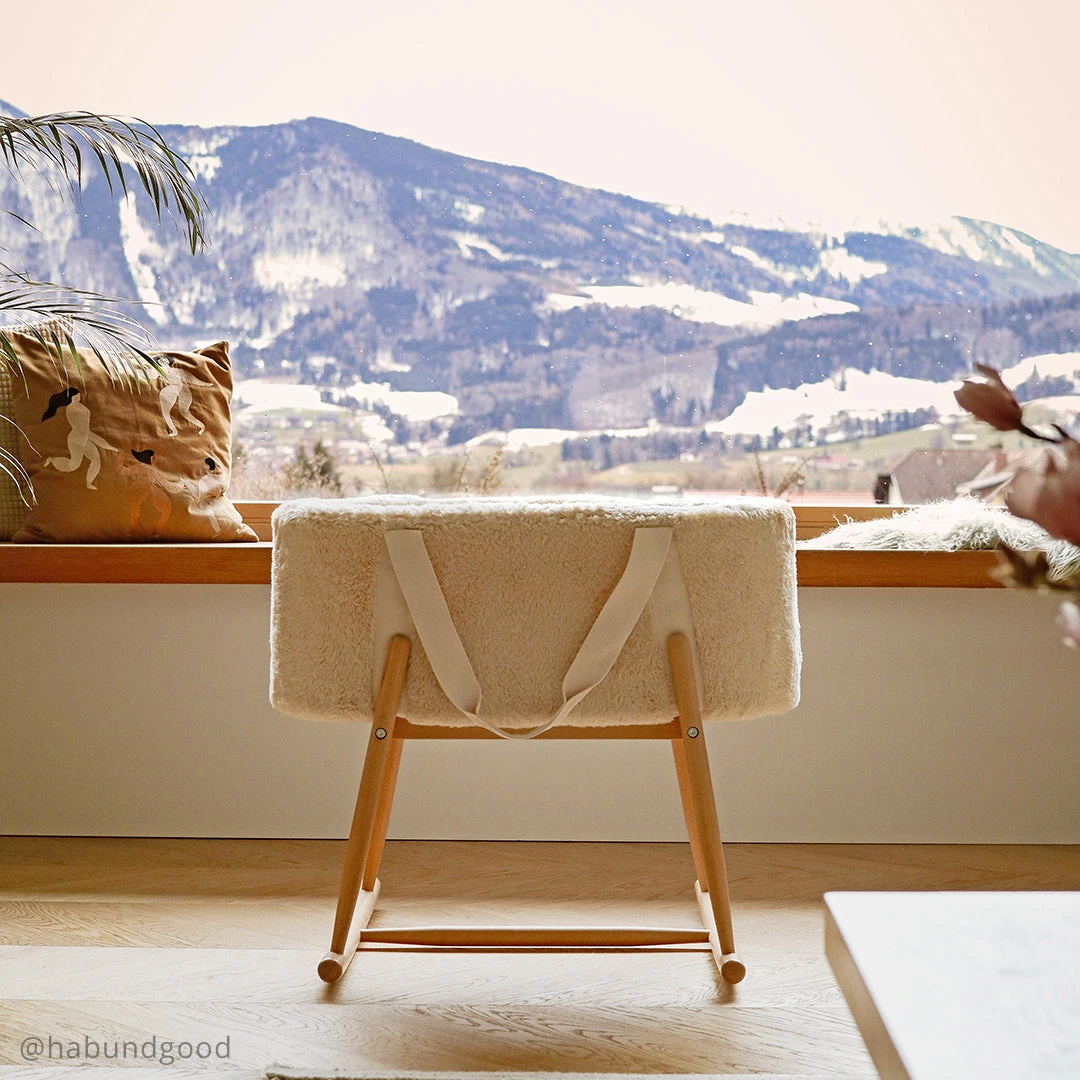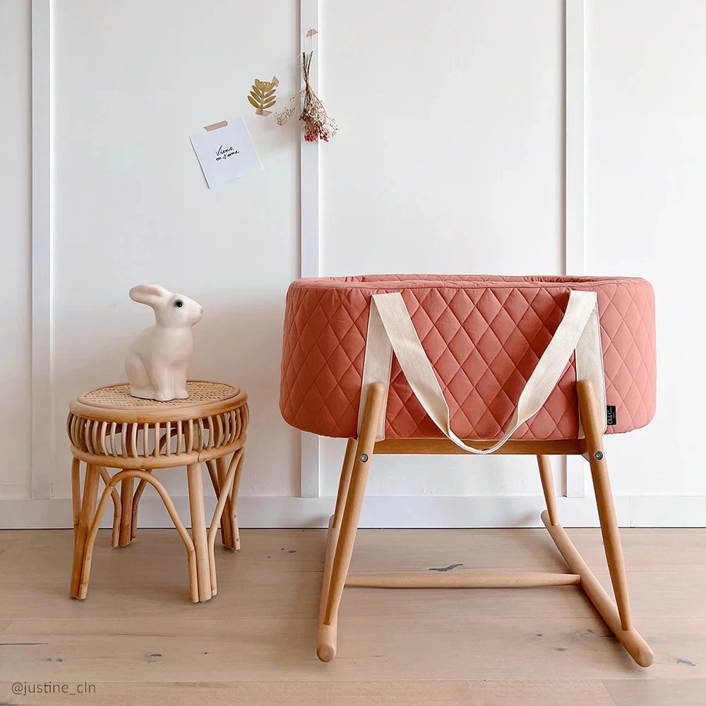 The Charlie Crane KUKO Moses Basket is a cosy cocoon that can be taken anywhere. From the bedroom to the living room, from the living room to the holiday home… In addition to its handles, the KUKO Moses basket – made of foam and organic cotton – is optionally provided with a natural wooden support and can be transformed into a gently rocking cradle in the blink of an eye.
