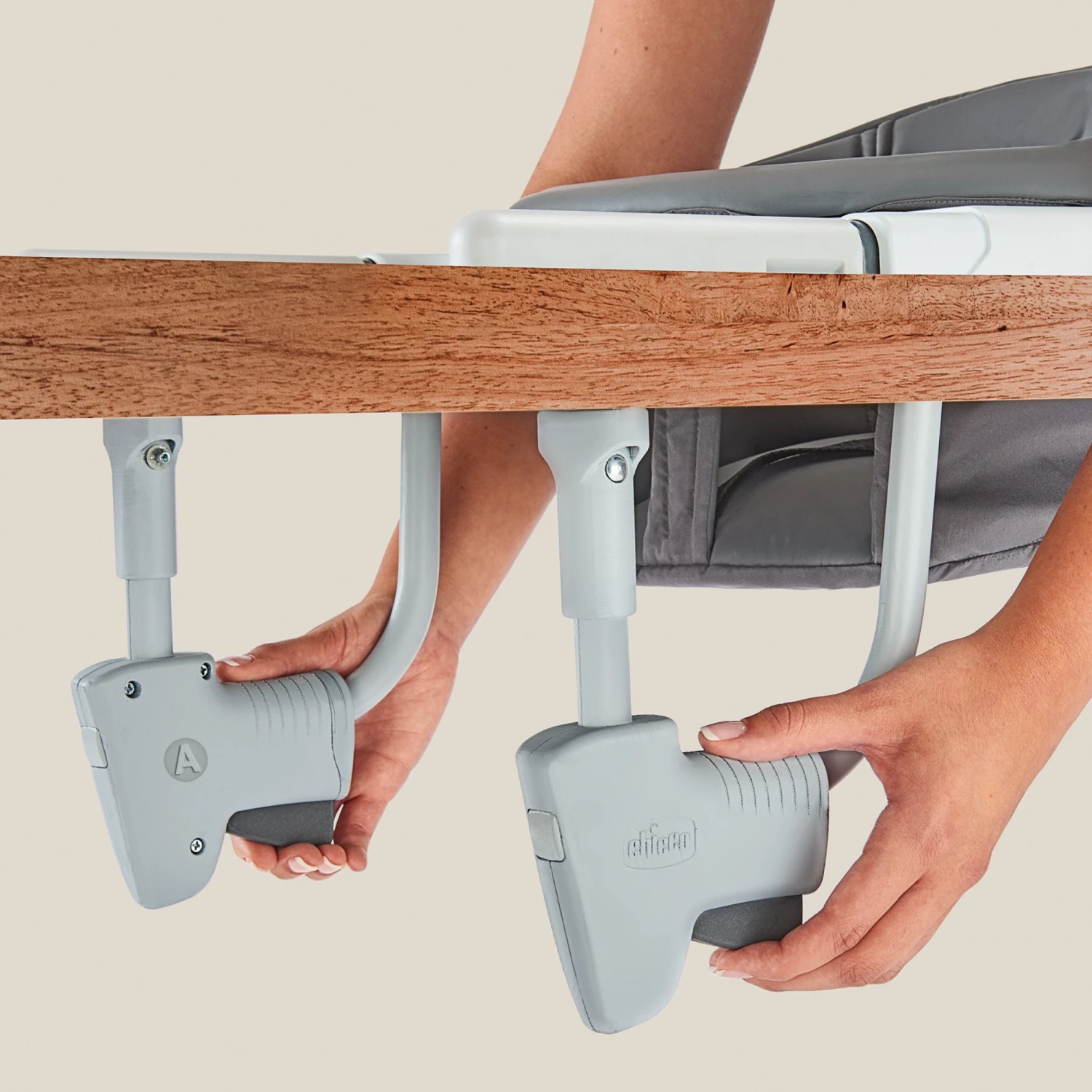 The Chicco FastLock 360 Hook-On Chair fully rotates to accommodate the needs of your baby any time of day. Turn the chair to the side for face-to-face feeding, forward for a place at the table, or toward the back to keep baby in the center of the action. Featuring a quick and secure setup, the innovative FastLock™ clamp attaches in seconds with a reassuringly tight grip. The rubberized feet enhance the grip and protect the table from scratches and scuff marks, conveniently fastening to most tables.