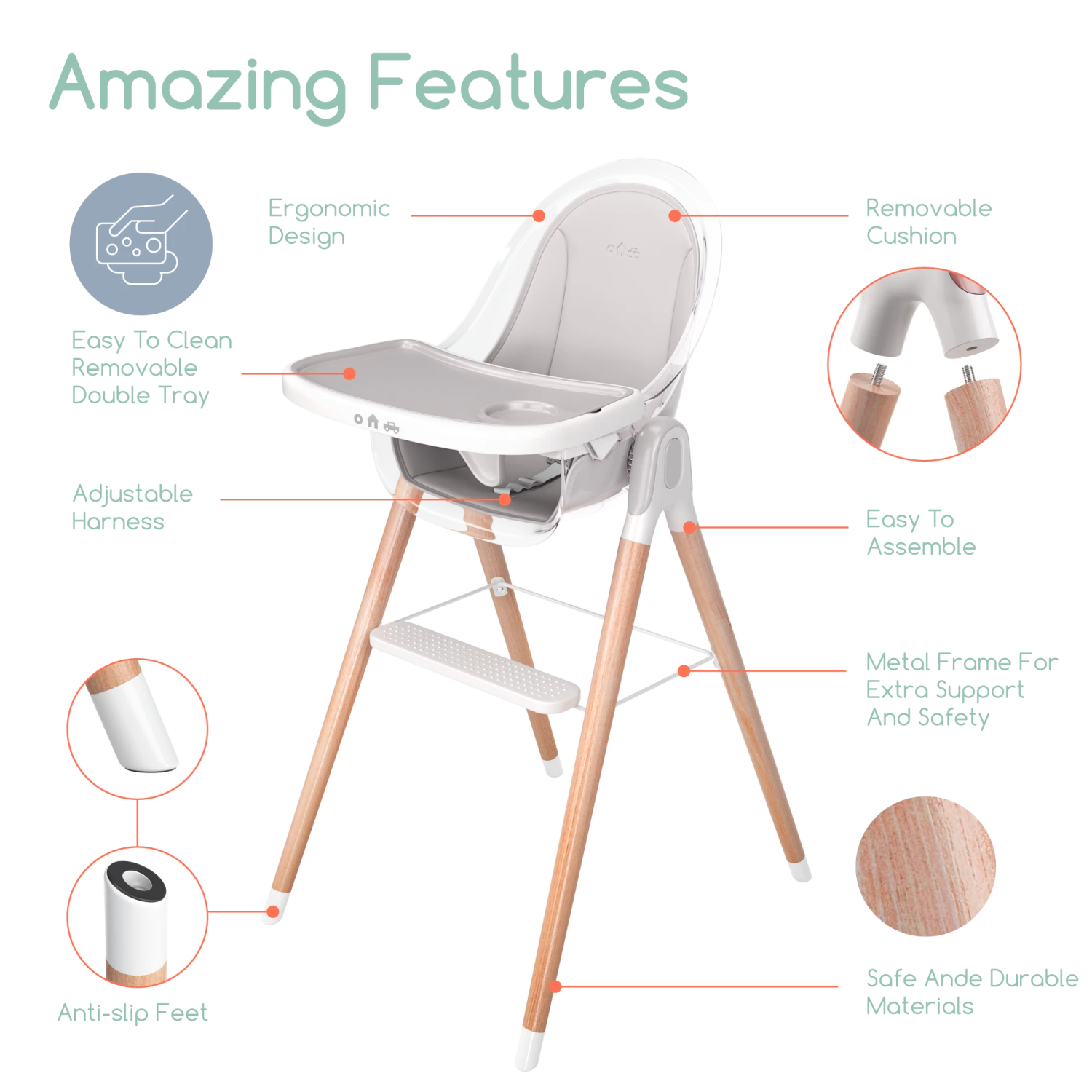 - Use it as a high chair, booster chair, or kid’s seat.