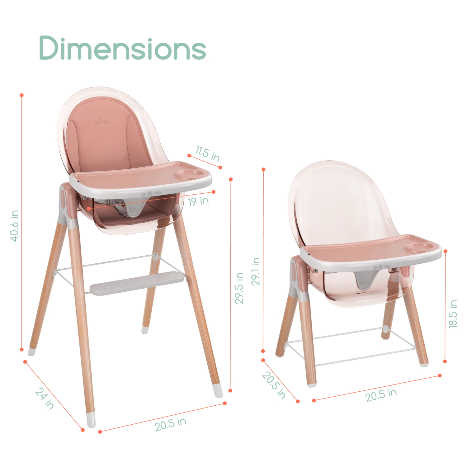 - Max Weight in high chair mode 33 lbs.