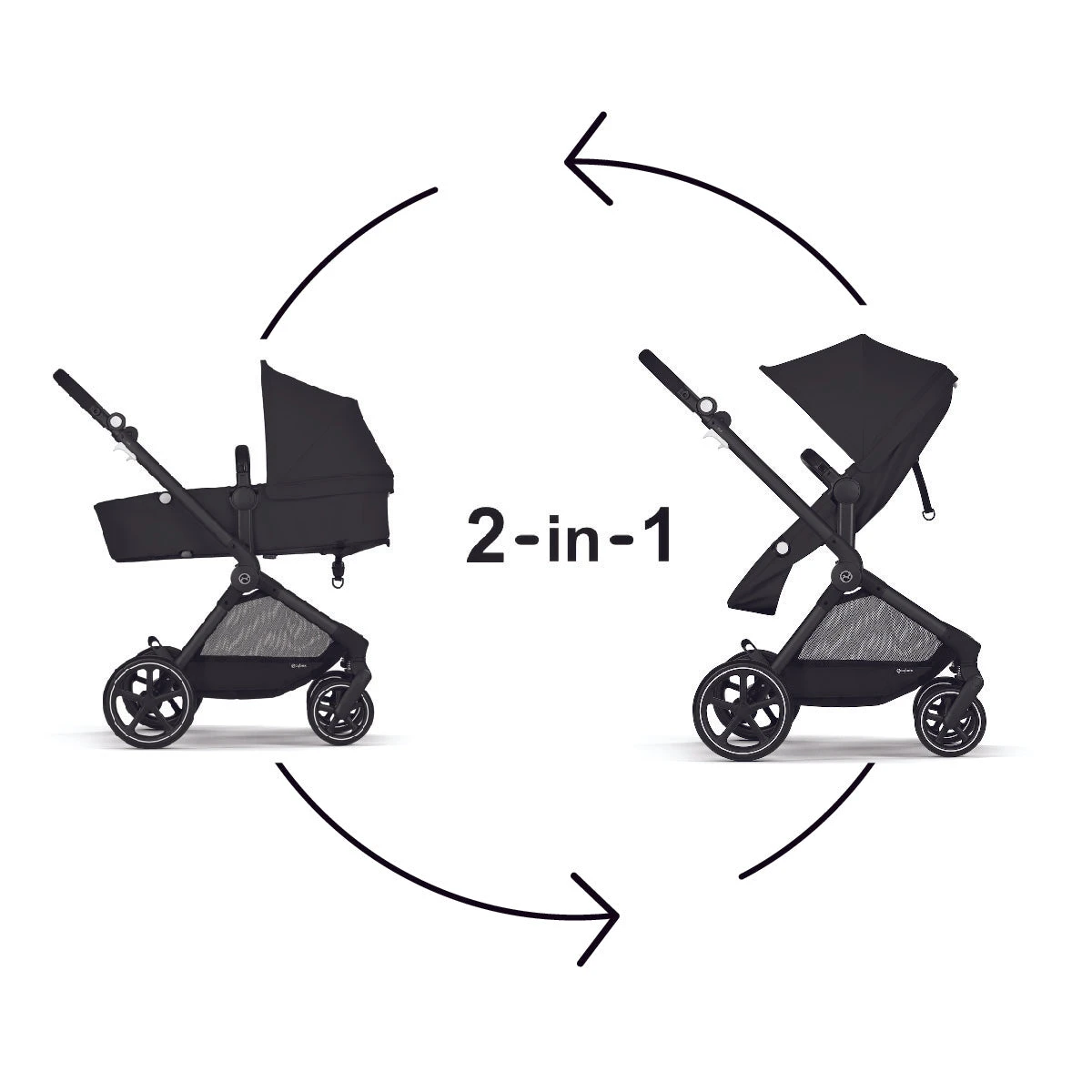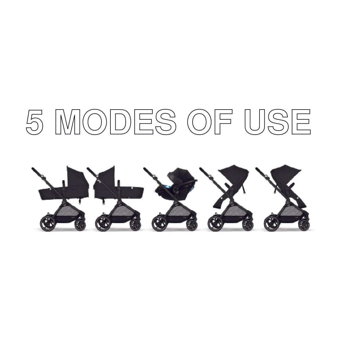 - 5 modes of use: Easily adapting to your ever-changing needs, the EOS can be configured into five distinct modes: front-facing Carriage Mode, rear-facing Carriage Mode, front-facing Seat Mode, rear-facing Seat Mode, and Travel System Mode when you attach a CYBEX infant car seat.
