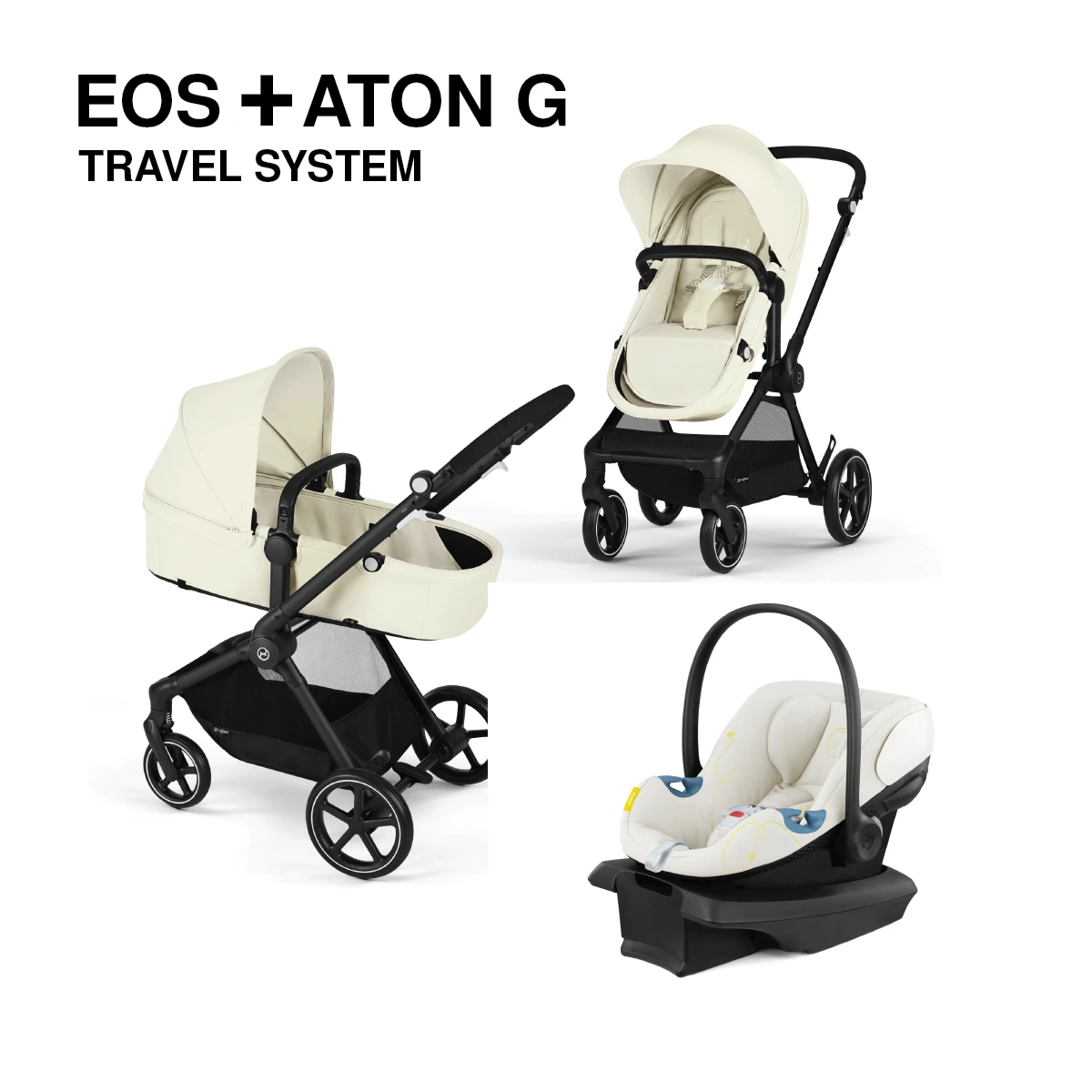 The CYBEX EOS Stroller + Aton G Infant Car Seat is a perfectly streamlined Travel System for your growing family. A complete travel solution from birth, it features a 2-in-1 seat unit that easily converts from lay flat “carriage mode” for your newborn to a reversible toddler seat when your child grows bigger – no extra components or accessories required. Additionally, you can use the included adapters to attach the Aton G Infant Car Seat to create the ideal travel system, complete with advanced safety features.