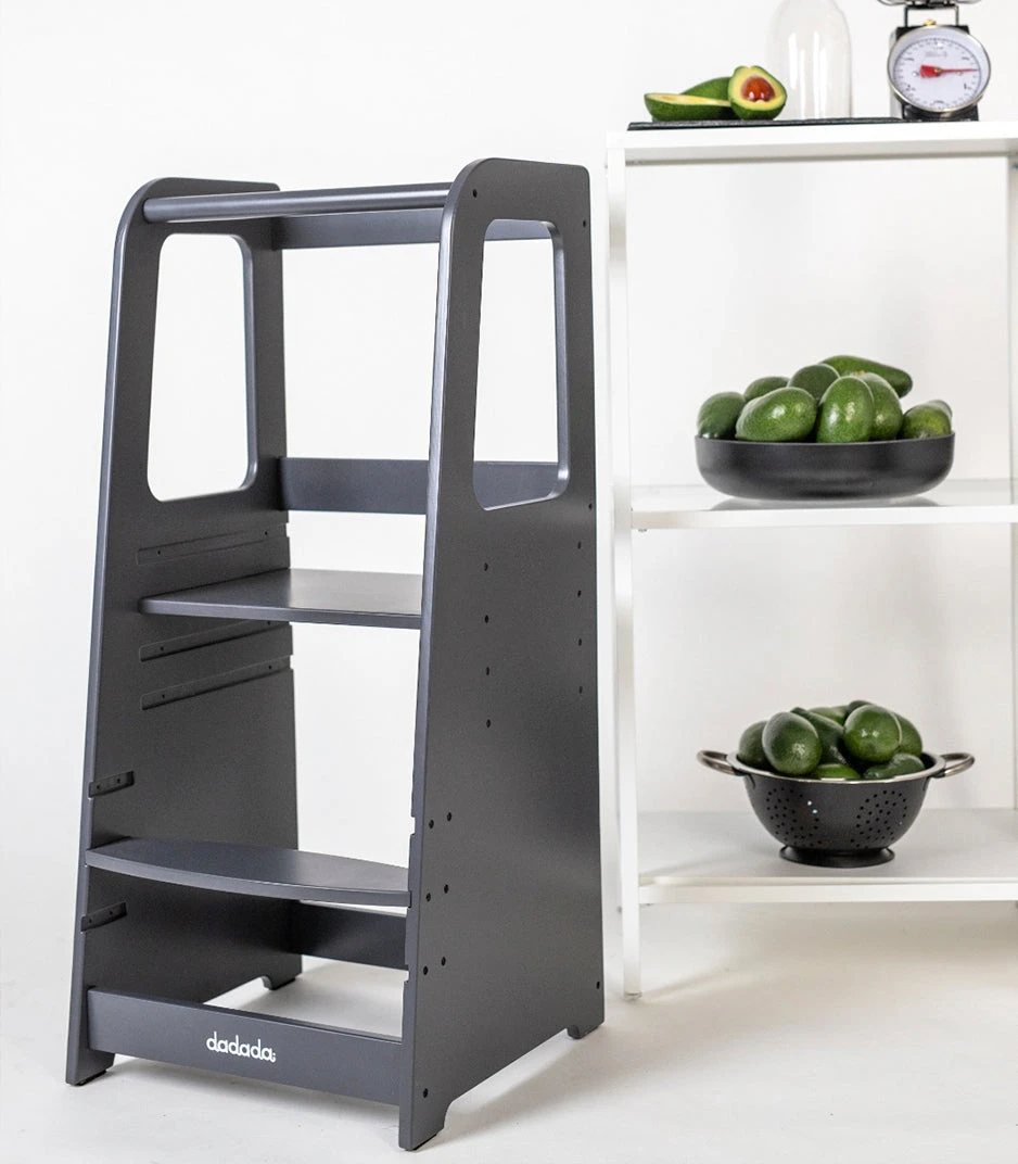 The dadada Toddler Tower is built to help your growing little one safely reach higher surfaces. It’s perfect for reaching tabletops for craft time, countertops to explore new tastes, and sinks to practice handwashing and teeth-brushing with self-sufficient ease. With easy-to-adjust steps to reach a variety of heights, baby-safe finishes, and a collection of adorable colors, the Toddler Tower is a must-have for your baby’s next exploratory phase.