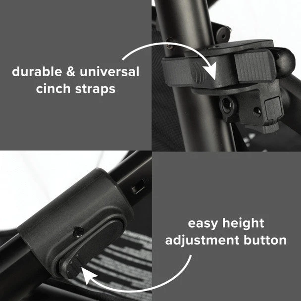 - Customize your ride with extendable arms that adjust in seconds for universal compatibility with your favorite stroller or wagon.