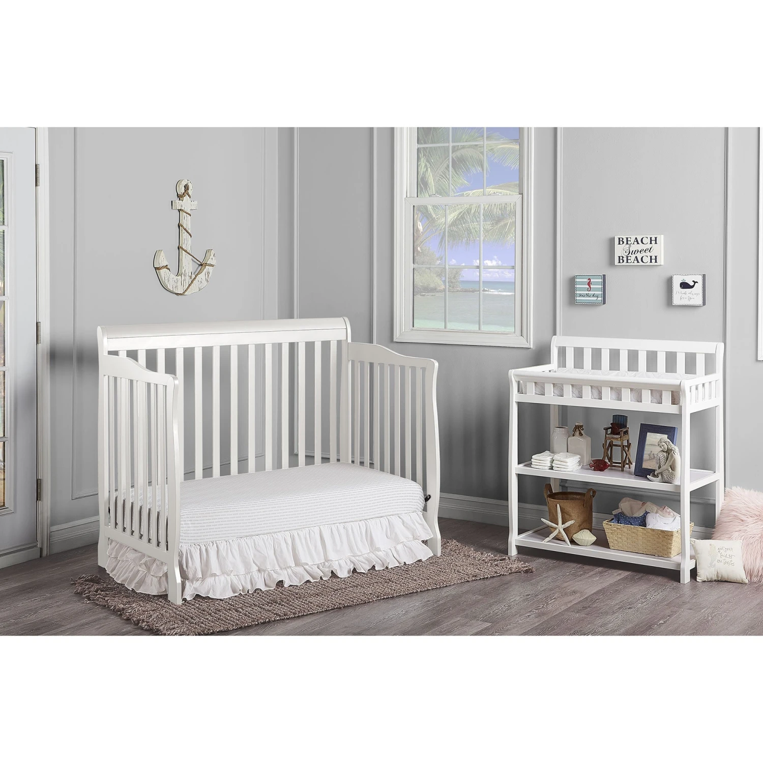 - Fits a standard crib-size mattress, sold separately.