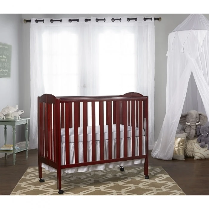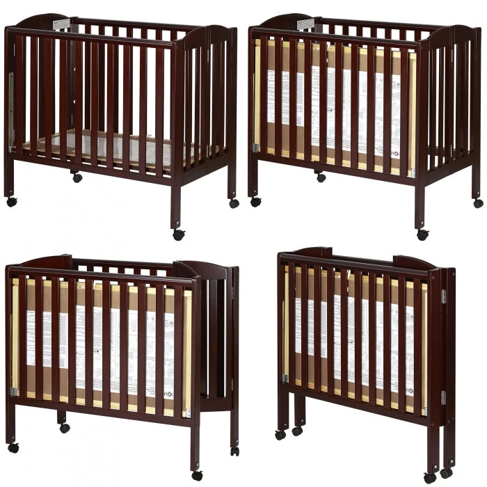 The Dream On Me, 3-in-1, Folding, Portable Crib is the only 3 level portable crib available. The U.S. patented rail design easily converts cribs to a changing station or playpen in seconds. Easy to assemble, one-hand folding for flat, compact storage. Features include a stationary (non-drop side) rail system which provides the utmost in product safety and dual hooded, locking wheels. Made of Birchwood and available in 6 finishes.