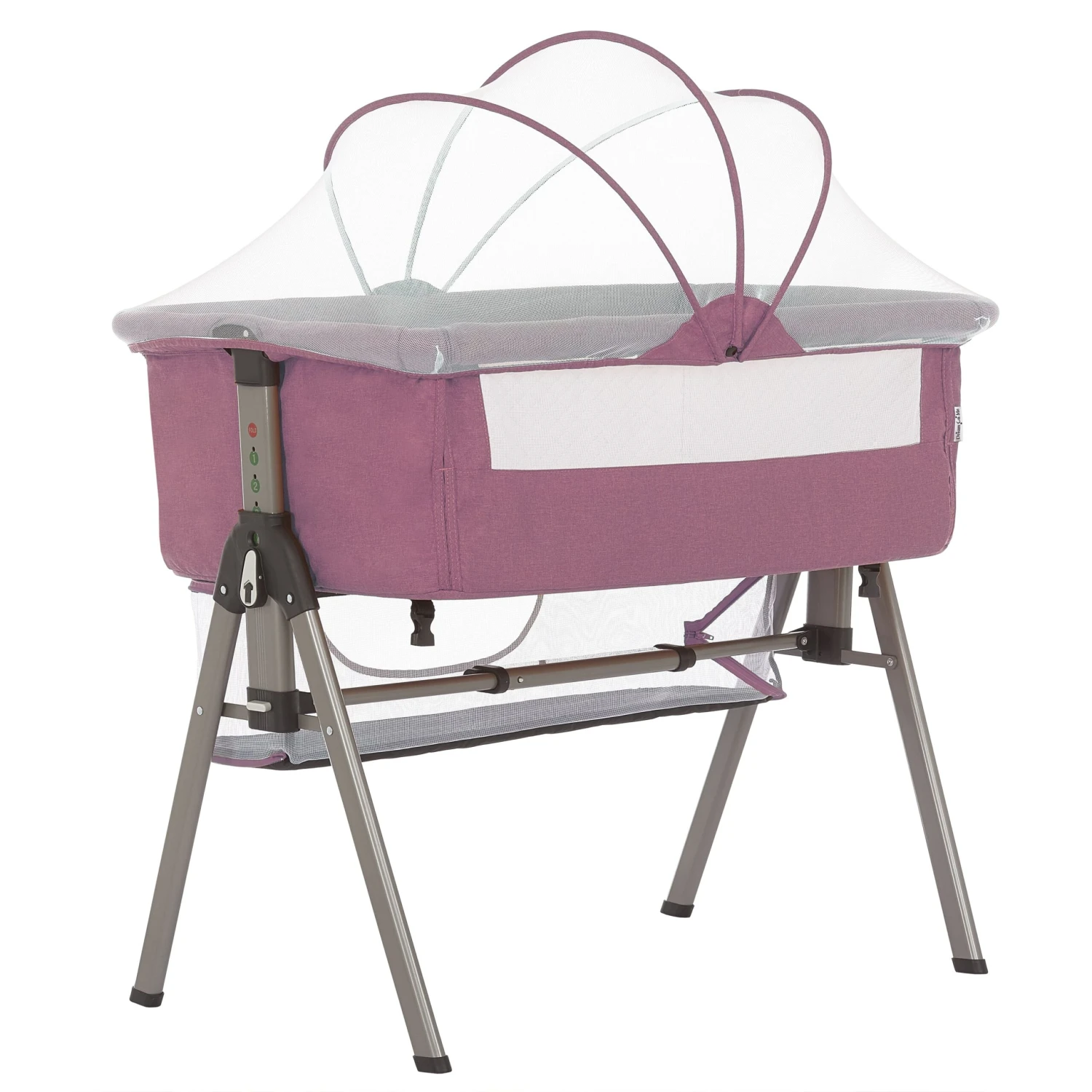 Let your baby be close to you throughout the day and night with the Dream On Me Lotus Bassinet and Bedside Sleeper. Lightweight, so you can move it quickly around the house without having to disassemble it if wanted. Adjust the height to fit your bedside needs. I also love the option to use it as a bedside sleeper safely. Perfect for traveling with as its mobility is one of the best features. It’s just an easy pull of the legs, and it folds up to go in the travel bag. The storage basket on the bottom will be handy to keep diapers, wipes, and other essentials. One side has meshed with a side panel that folds down the Zipper undercarriage and comes with a bug net to keep out insects both indoors and outside.