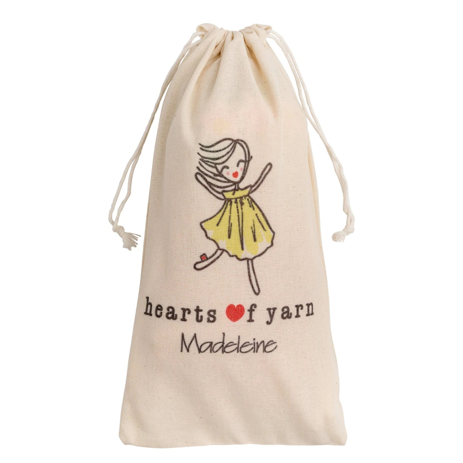 Ely’s & Co. Hearts of Yarn Madeleine Ballerina Doll loves to dance! From pirouettes to pantomimes, you can count on Madeleine to bring some excitement to any room. Madeleine is wearing a creamy-rose tulle ballerina dress and a felt flower crown. She comes in a branded cloth drawstring bag with her name on it so she can travel safely. Madeleine is lovingly handmade by Artisans in Peru.