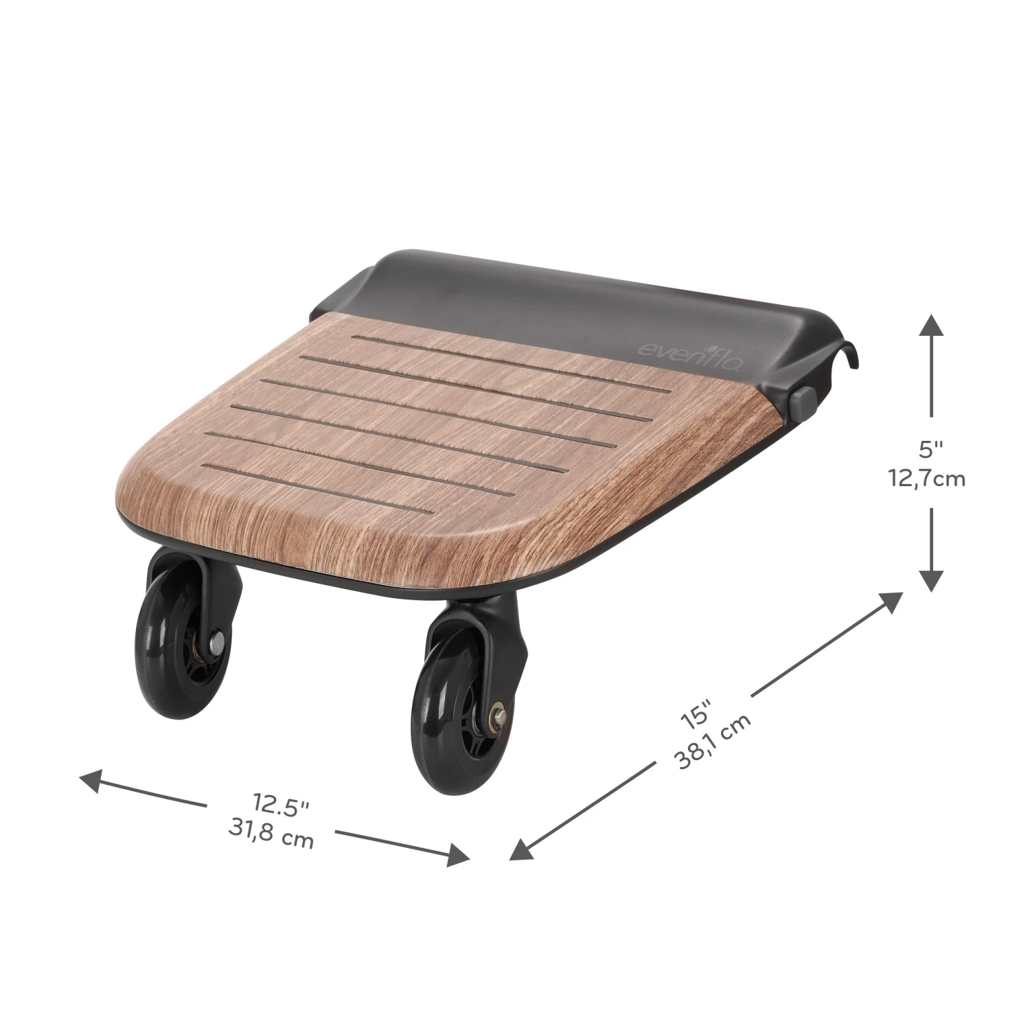 - Smooth-ride wheels enable a comfortable ride, while the non-skid, wood appliqué surface offers style.