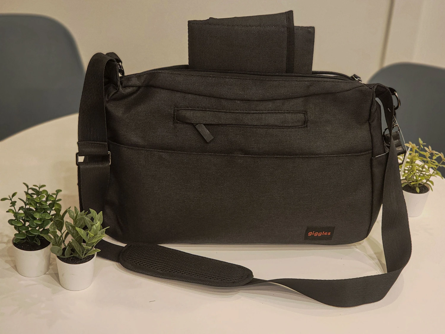 The Giggles Diaper Bag ensures convenient organization and accessibility to your essentials when you’re on the go. With numerous compartments available, everything can be kept tidy and within reach. Additionally, the accompanying changing pad simplifies on-the-go diaper changes.
