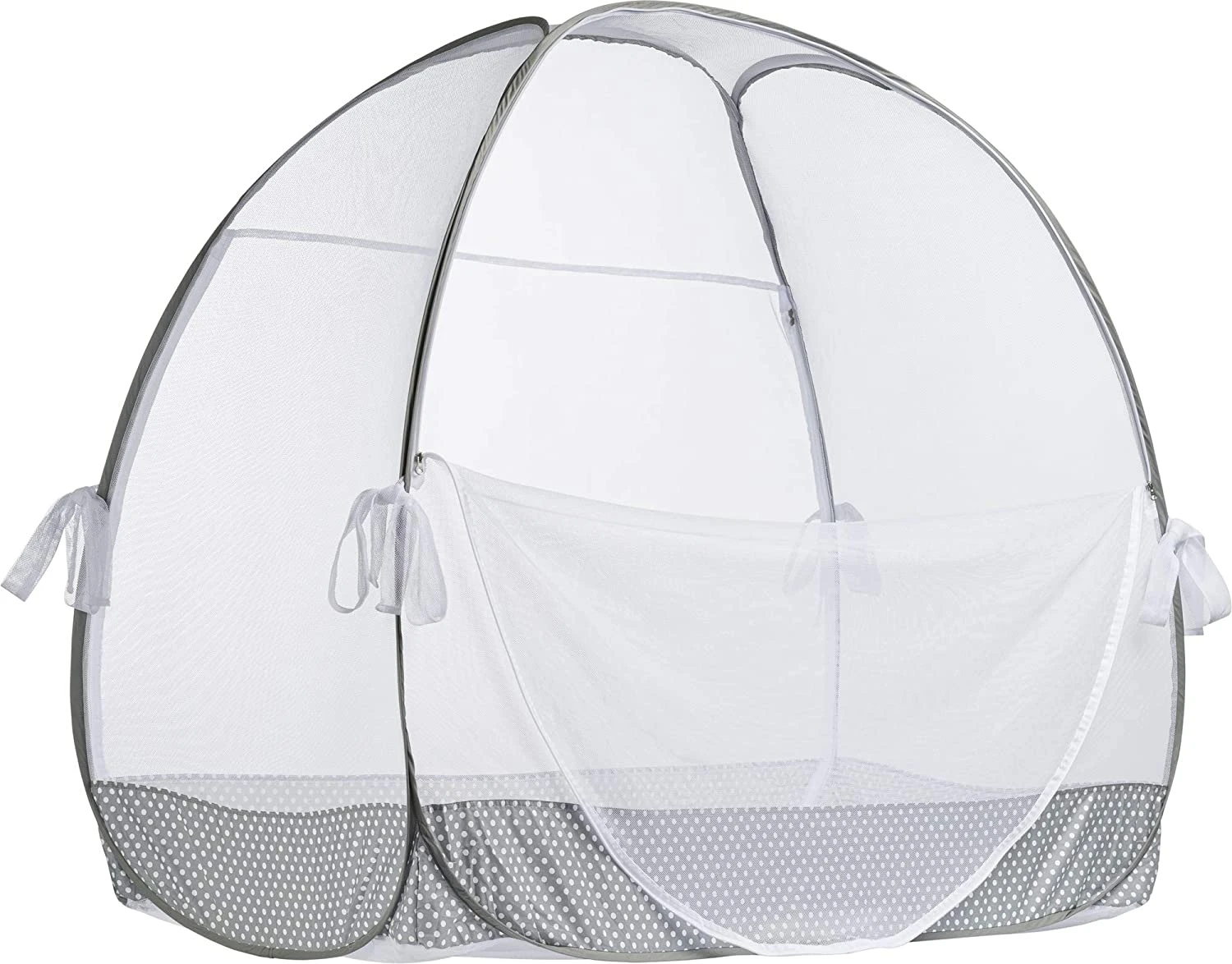 The Green Frog Baby Crib Safety Net is the perfect solution for worried moms of active toddlers. The tent keeps the child safe by preventing them from climbing out of the crib. It easily pops open and folds back down in seconds, and the sturdy zippers enable quick & convenient access to your baby inside the tent. It also protects against mosquitos and insects.