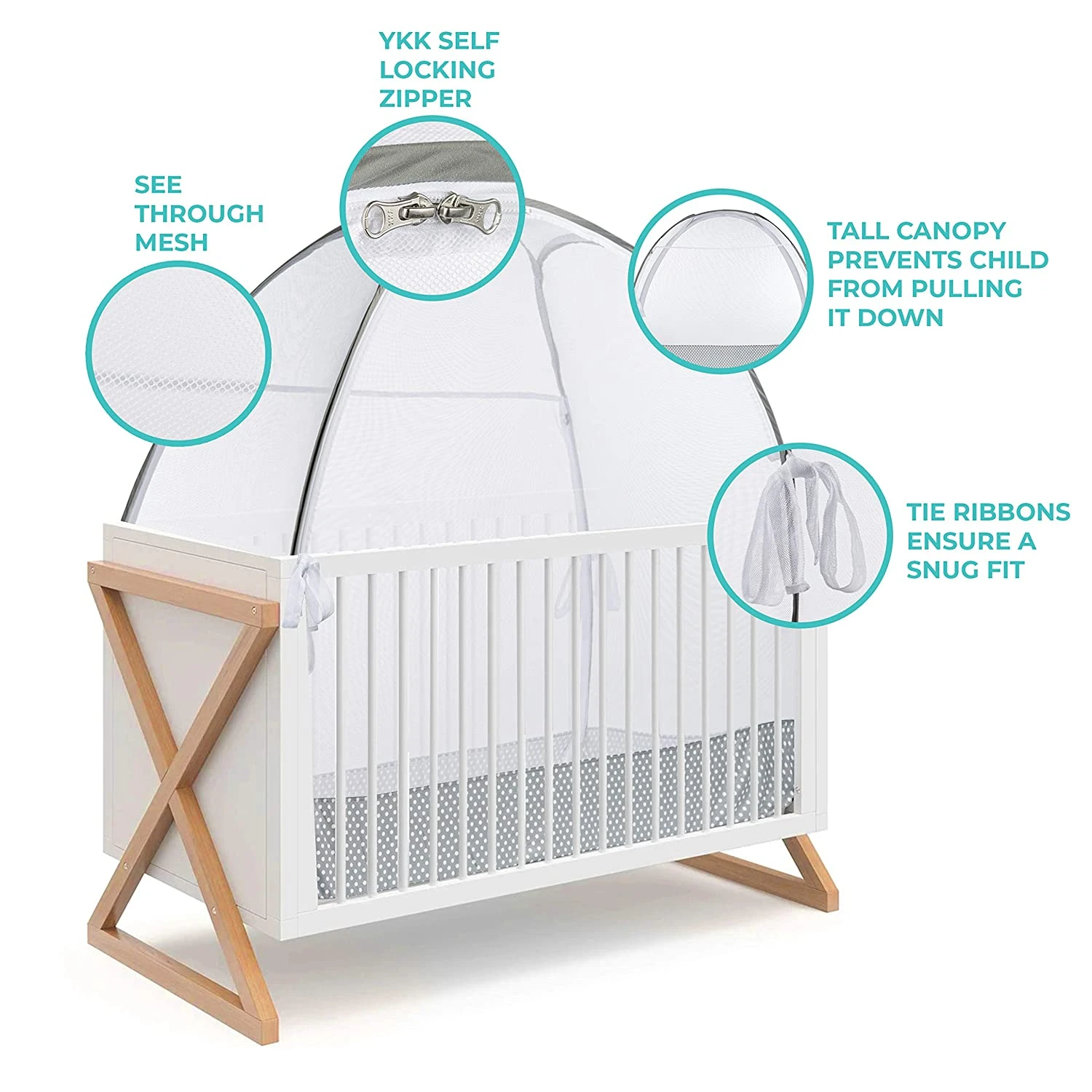 - Keeps children safe and prevents them from climbing out of the crib.