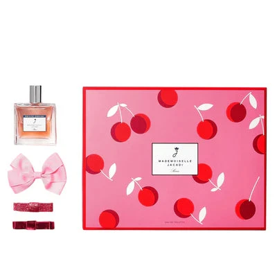 Jacadi Paris Mademoiselle Petite Cerise Eau de Toilette offers a sophisticated and gentle, sweet scent explicitly crafted for young girls. This set includes a 100ml bottle of Jacadi Mademoiselle Petite Cerise Eau de Toilette and a collection of stylish hair clips, making it perfect for embracing both elegance and fun.