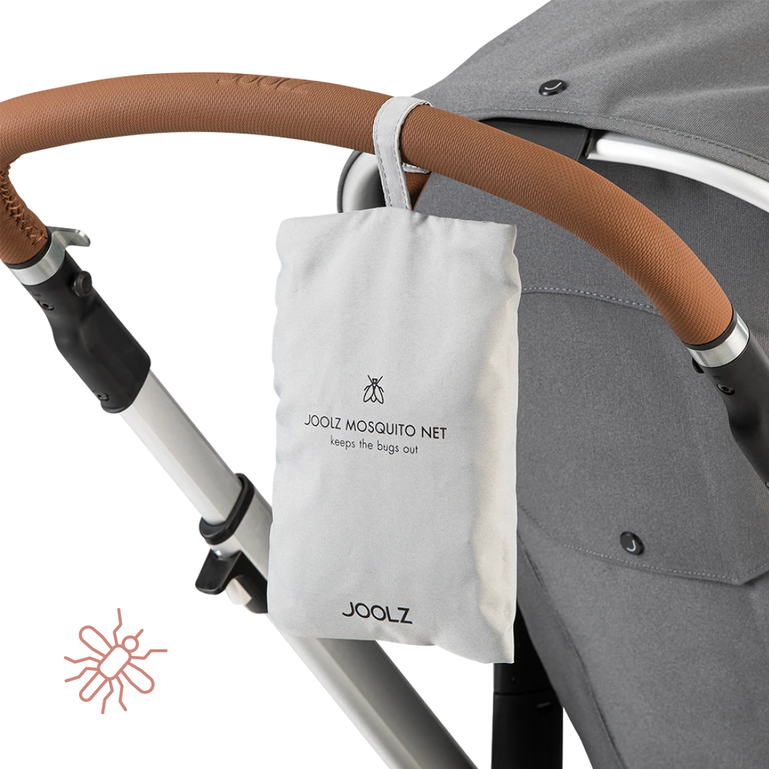 The Joolz mosquito net is designed to fit perfectly with your Joolz Aer/Aer+/Aer2, creating a shield that keeps insects away from your child. It looks great in combination with your stroller, thanks to the super-fine mesh that allows your little one to see out, and lets the fresh air in. There’s even a special layer at bottom to protect it from dirty shoes. And when you’re not using it, you can easily store it in the special pocket bag.