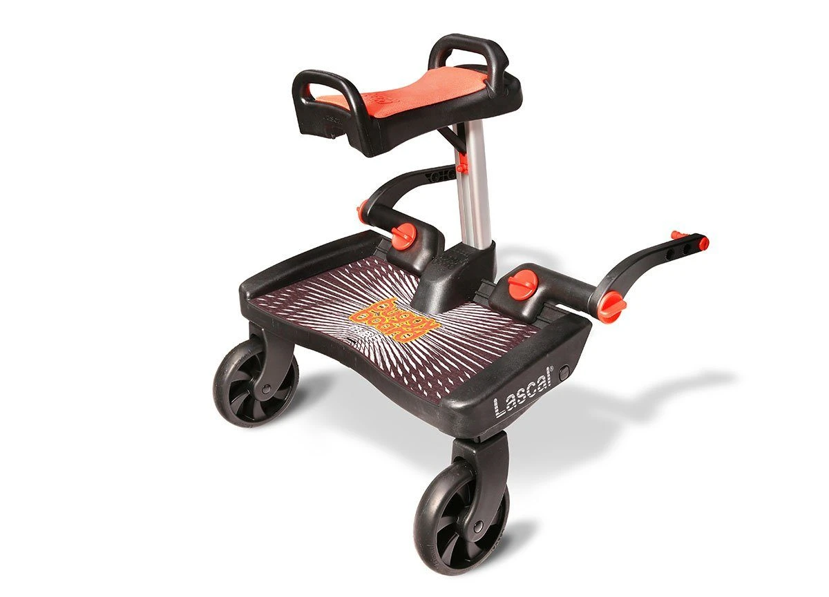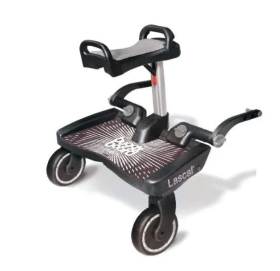 The Lascal BuggyBoard is innovative, safe, and practical for tired toddlers to hop on board so you can keep going without being slowed down. The Maxi+ includes a foldaway saddle giving your child the option to sit or stand. With a clever Lascal easy-fit system, you can connect the board to almost any single or double buggy. Keep calm knowing your child is safely onboard with its large anti-slip surface, side protection frame, and a firm, comfortable platform.