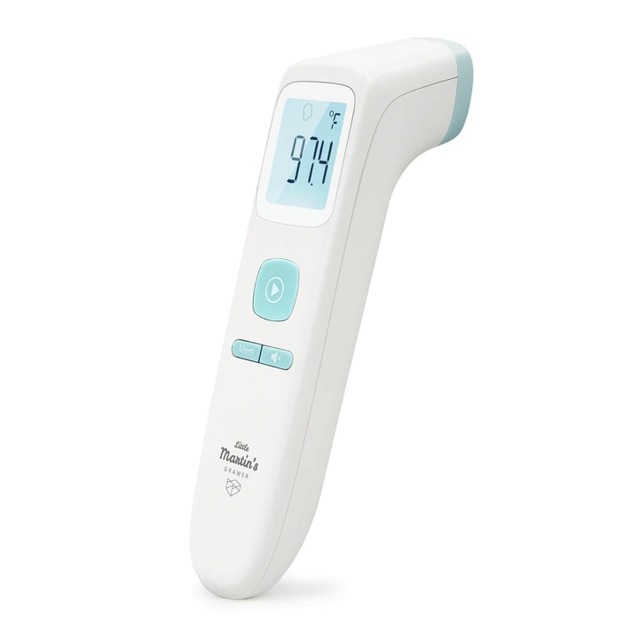 Little Martin’s non-touch thermometer is designed for both babies and adults to check temperatures safely, accurately and instantly without contact. This easy-to-use thermometer allows you to read temperatures of forehead, body, surface, ambient and objects in just one second. It can be taken up to 2 inches away from the subject. This is a hygienic alternative to regular thermometers, and has a quick read LCD backlit display featuring a red, yellow or blue glow.