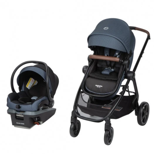 The Maxi Cosi Zelia² 5-in-1 Modular Travel System offers supreme comfort and safety on every stroll and ride in the car. The stroller seat easily transitions from carriage to stroller mode and is reversible so your child can face you or the street. For peace of mind on every ride, the Mico XP infant car seat exceeds federal safety standards. The adjustable base features the self-retracting MaxiLock™ LATCH technology for a quick, secure installation every time. Enjoy an elegant touch with the textured vegan leather stroller handlebar & bumper bar sleeves.