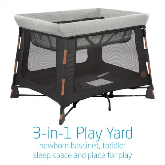 The Maxi Cosi Swift Play Yard is a multi-use, stylish 3-in-1 travel play yard that functions as a newborn bassinet, toddler sleep space, and a sturdy play yard. Its smooth one-step fold is so quick and easy you can even do it one-handed. With a unique 2-stage mattress, the Swift conveniently grows with your baby from newborn to toddler.