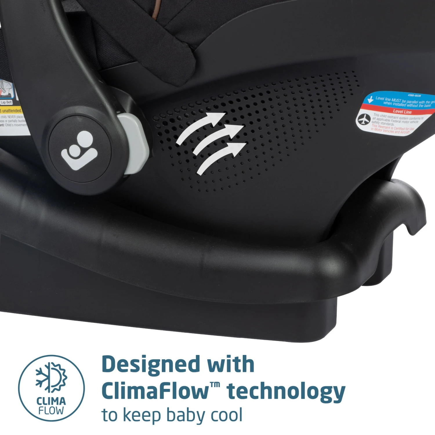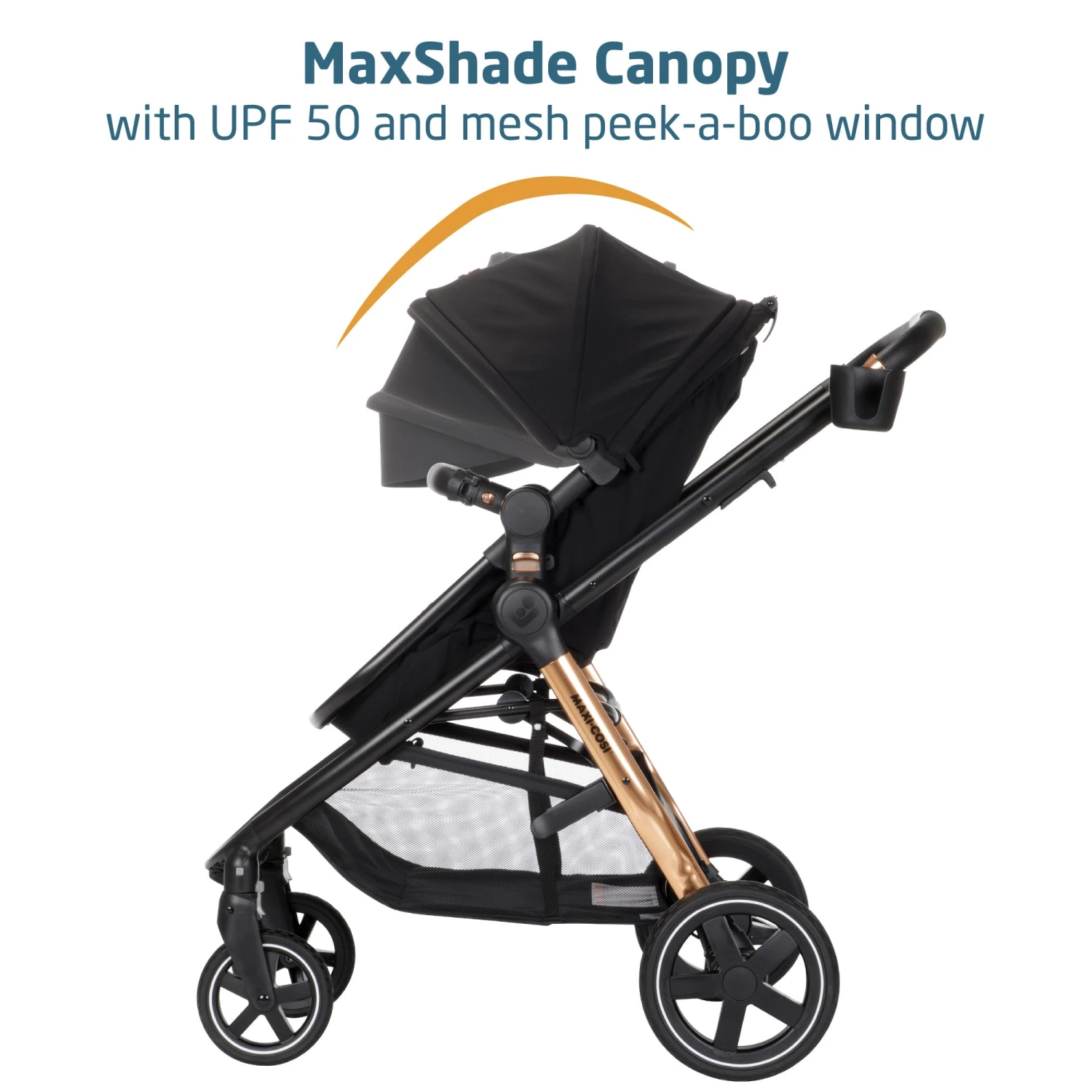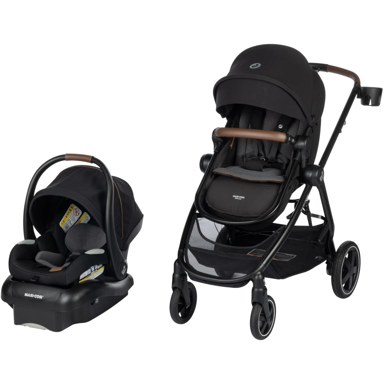 The Maxi Cosi Zelia² Luxe 5-in-1 Modular Travel System s designed to help you stroll into parenthood with ease. The stroller seat easily transitions from carriage to stroller mode and is reversible so your child can face you or the street. The included lightweight Mico Luxe Infant Car Seat is made for safety plus coziness for your baby. It features Side Impact Protection (SIP), removable plush infant inserts, and premium PureCosi™ fabrics that keep your little one comfy.