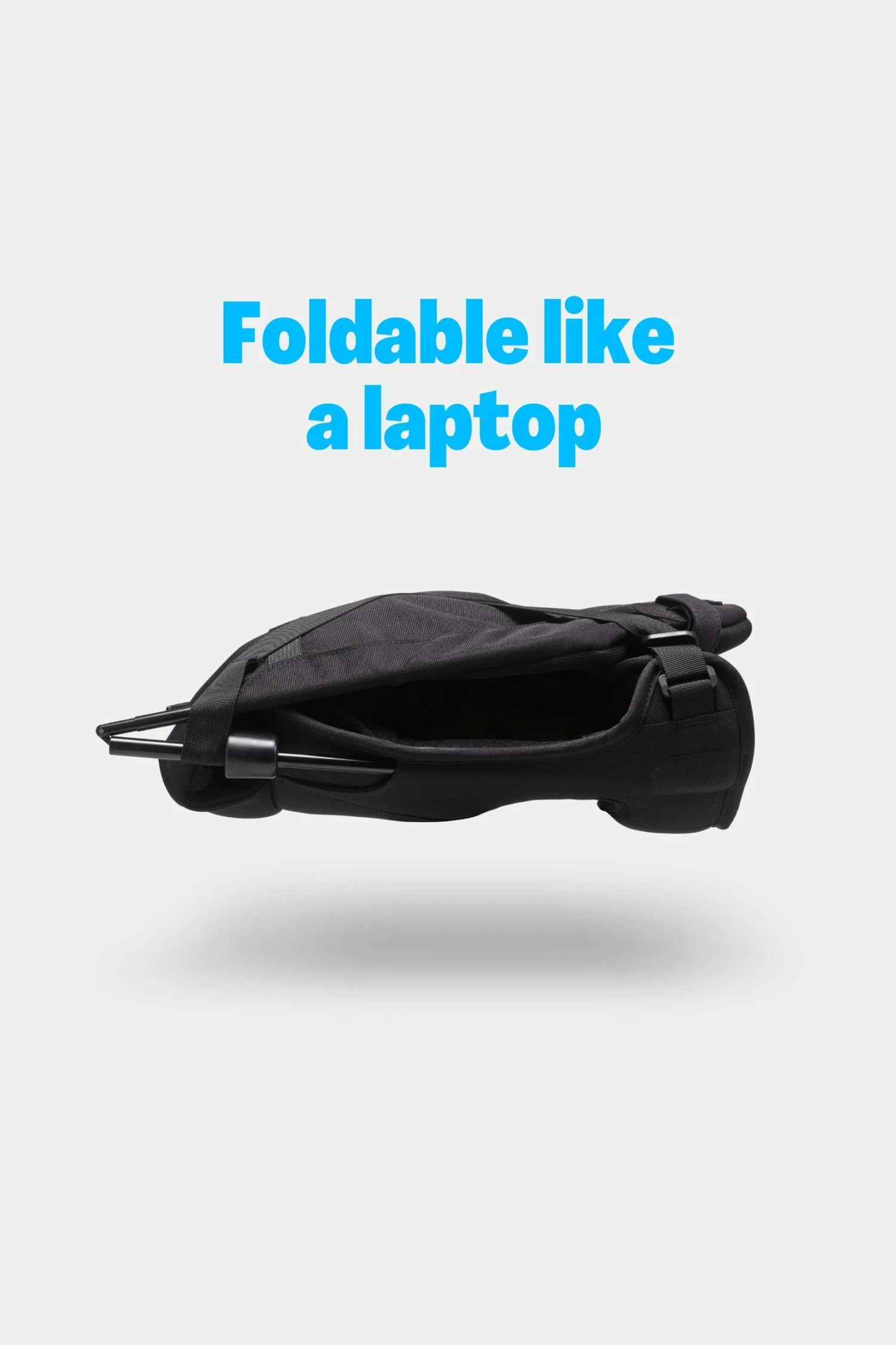 - Compact size and foldable like a laptop to 12″ x 12″.