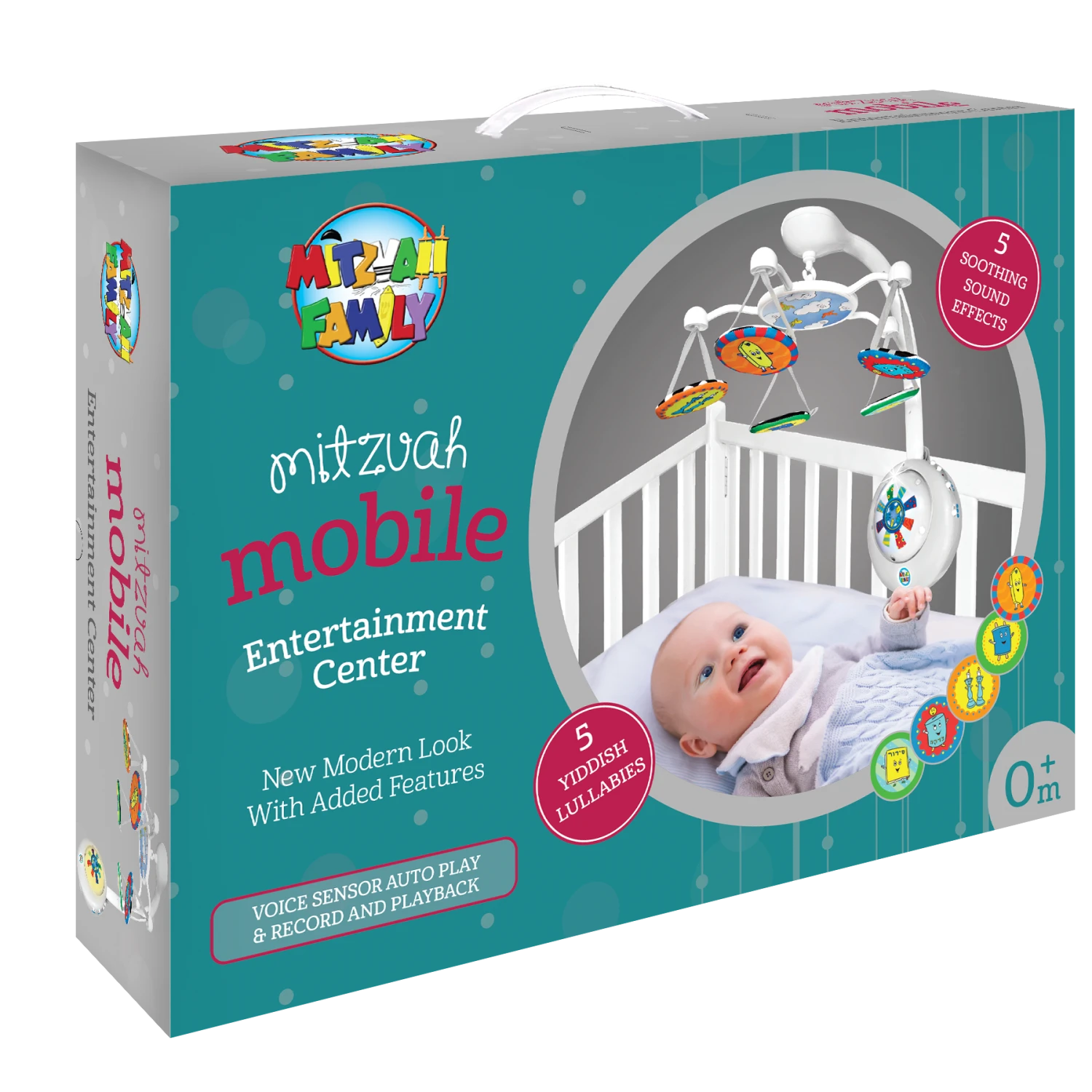 The Mitzvah Family Baby Mitzvah Mobile boasts charming Jewish characters and traditional Yiddish lullabies. It provides a calming and enjoyable experience for your little one.
