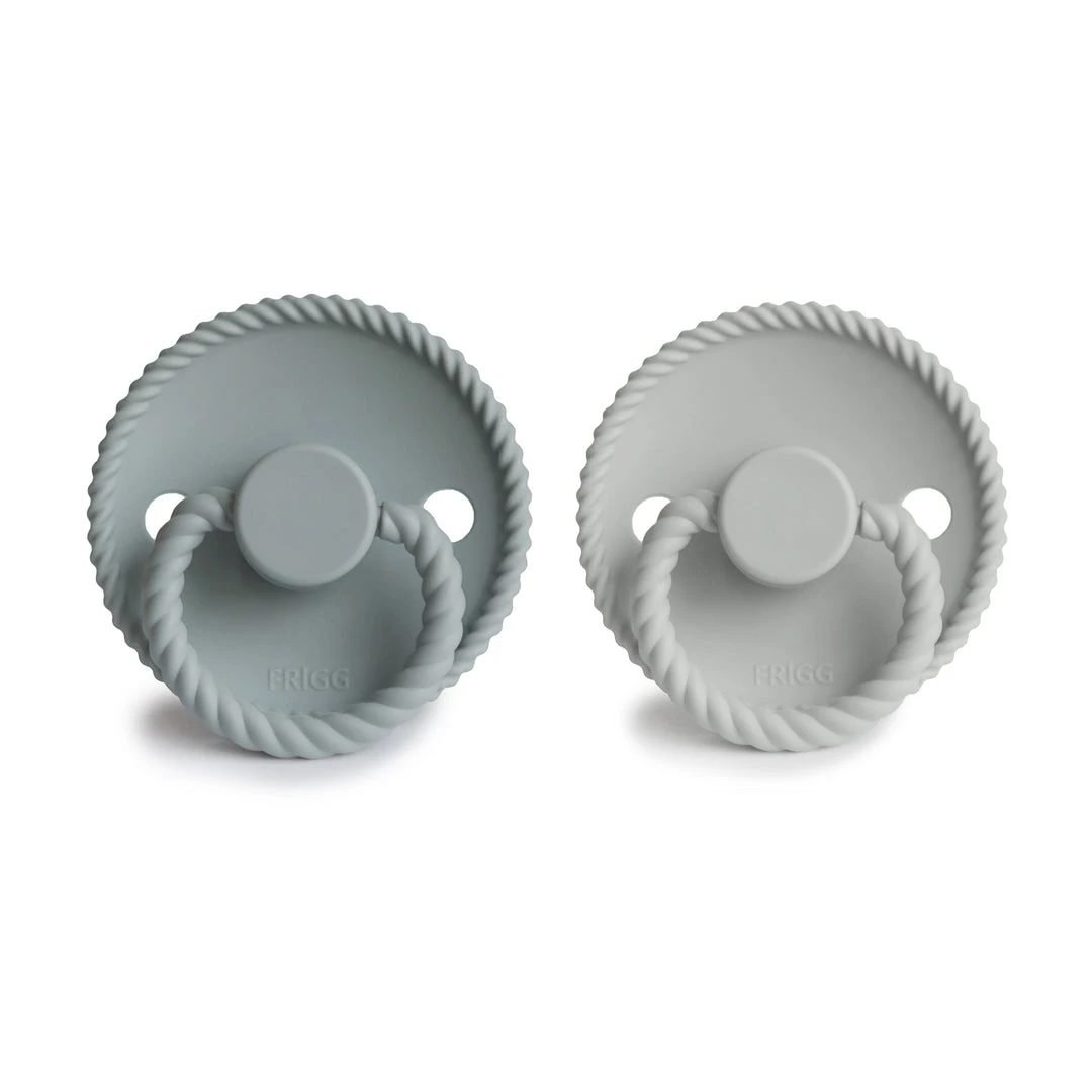 The FRIGG line of Rope silicone pacifiers with improved SilkySoft™ nipple and an innovative Click-lock System has been thoughtfully designed for your baby’s comfort. It features an entwined rope that surrounds the pacifier shield. The outward curve keeps the pacifier off their delicate skin, while the air holes and a security handle ensure your baby stays safe. Available in a range of soft colors, FRIGG pacifiers make a beautiful addition to your collection of baby essentials.