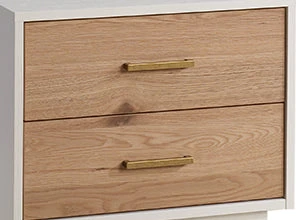 - The drawer front and façades are made of Materic Natural Oak wood, which accurately displays all the natural features of the wood, creating a truly natural appearance. Only carefully selected Materic Oak is used, allowing the natural wood knots to be visible without any splintery lines.