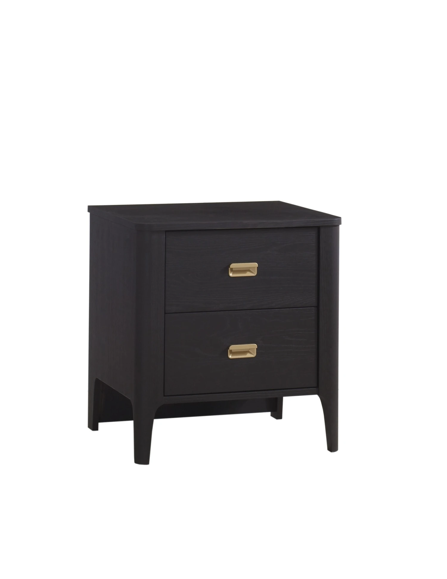 The Natart Palo Nightstand boasts round, chunky legs, adding to its midcentury charm. Its dual interlock system and self-closing drawers with a slow-motion mechanism provide added safety.