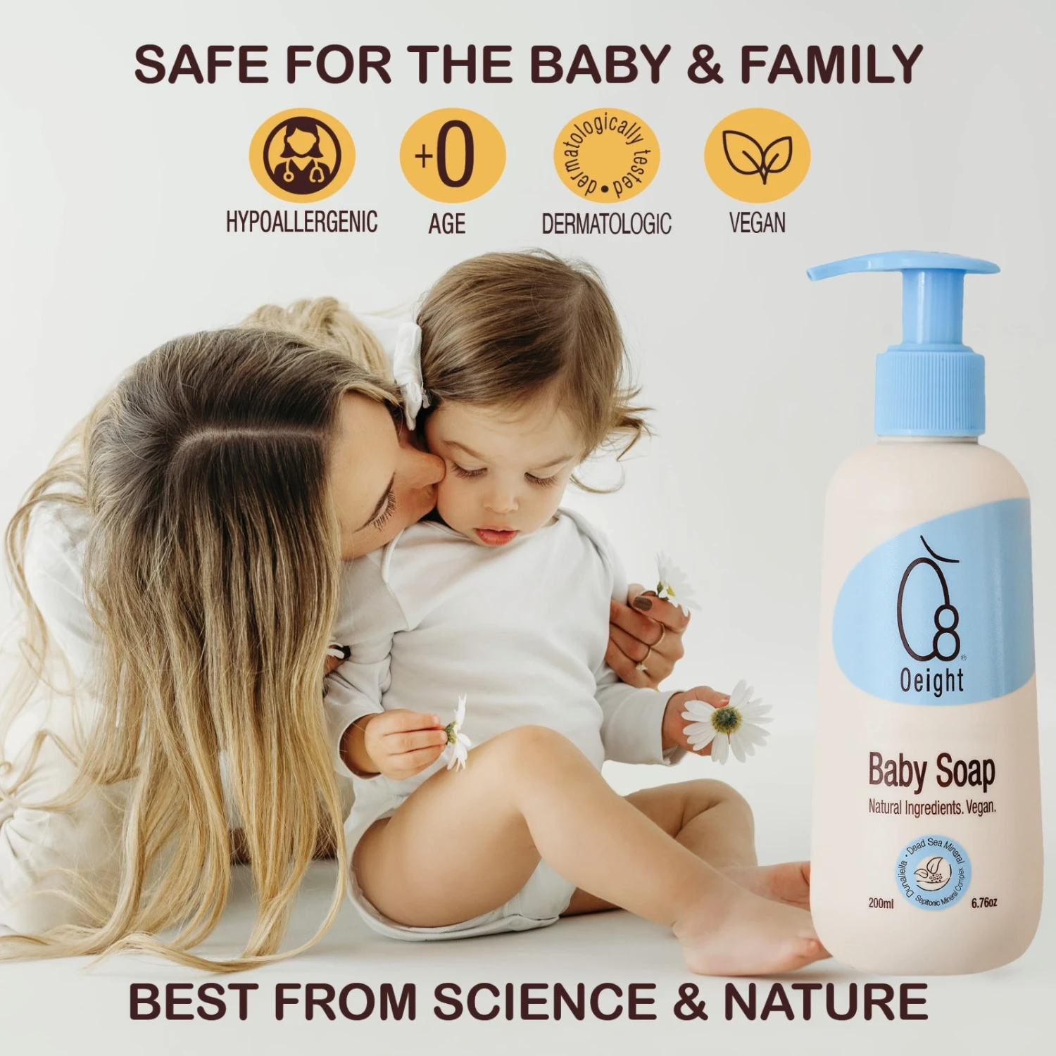 Oeight Baby Soap keeps your newborn’s skin clean and healthy. Specially formulated for delicate skin, it’s crafted with 100% natural active ingredients that nourish and revitalize while ensuring a balanced environment for sensitive skin. With its gentle formula, this newborn soap is perfect for your infant’s daily bathing routine.
