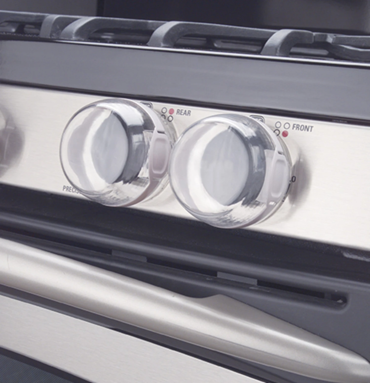 Safeguard your child with Safety 1st Clear View Stove Knob Covers 5-Pack. These child-proof, clear covers provide a barrier against curious minds while maintaining easy adult access to the stove knobs. The covers have a hinged lid that can be easily opened when it’s time to cook. Plus, the transparent material allows you to easily see if the knobs are safely in the off position.