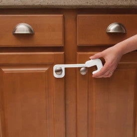 Make it difficult for your curious crawler to access cabinet contents with the Secure Mount Cabinet Lock. This handy lock installs on cabinets with either knobs or handles to help keep them off limits to little ones. The handle is designed to stay closed, but hangs conveniently out of the way for periods of non-use.
