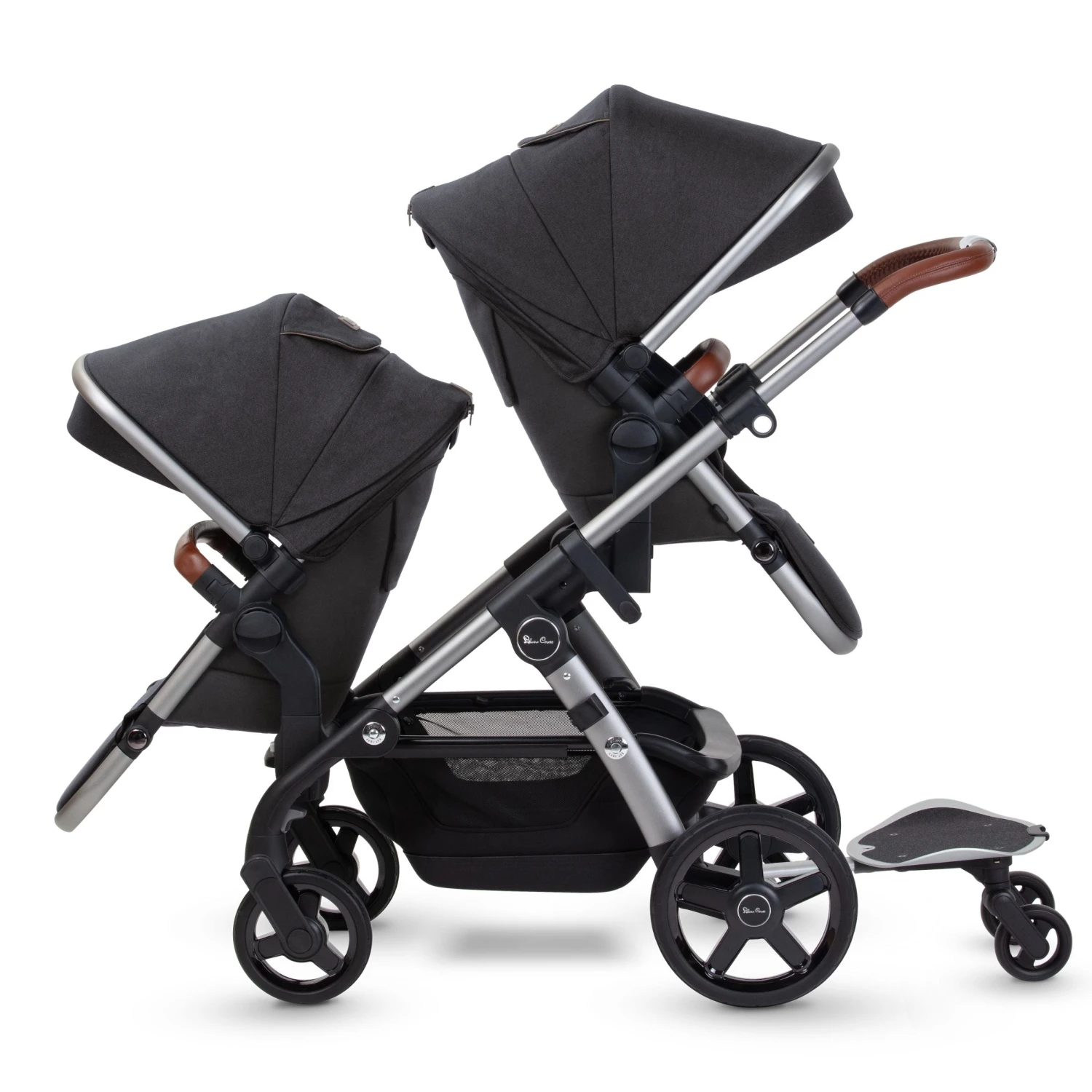 - Bassinet facing parent while tandem-seat faces world.