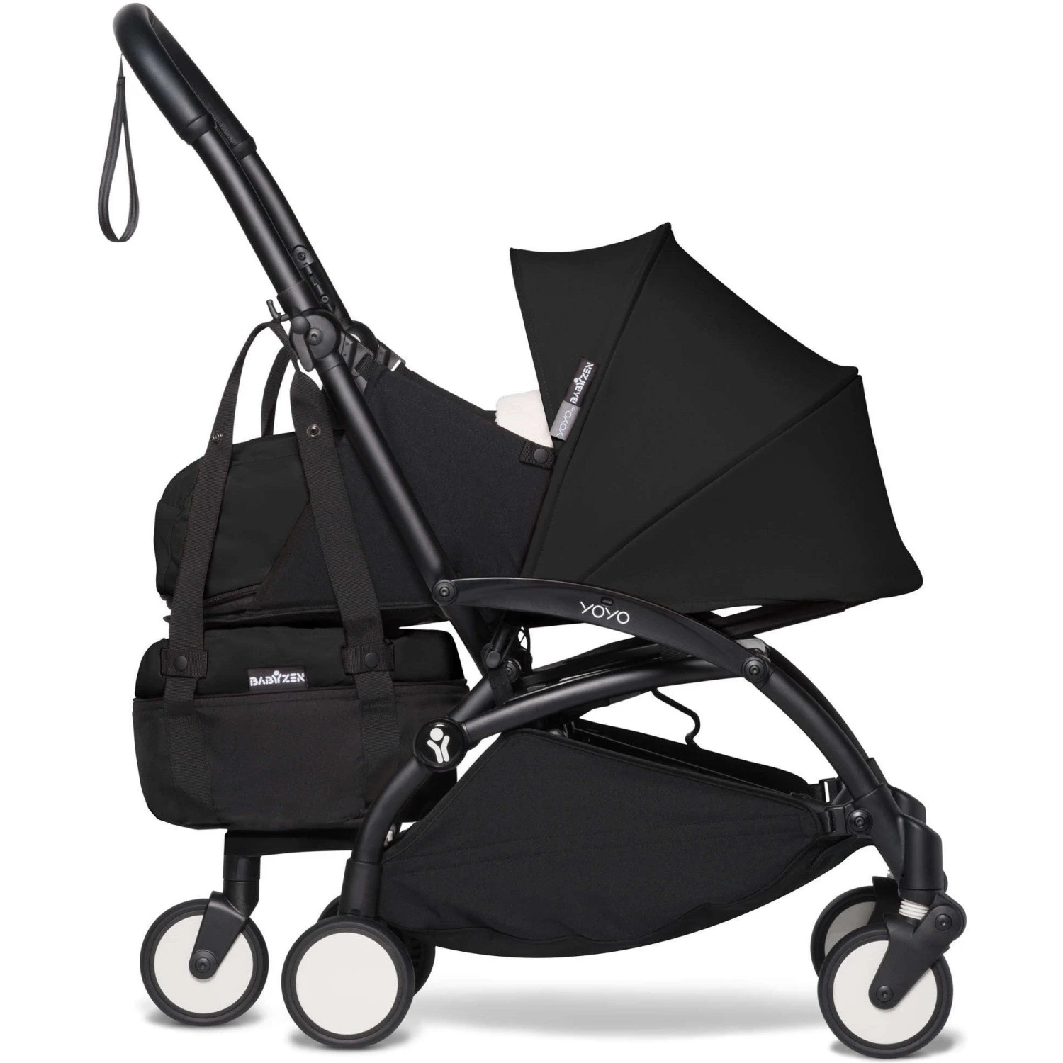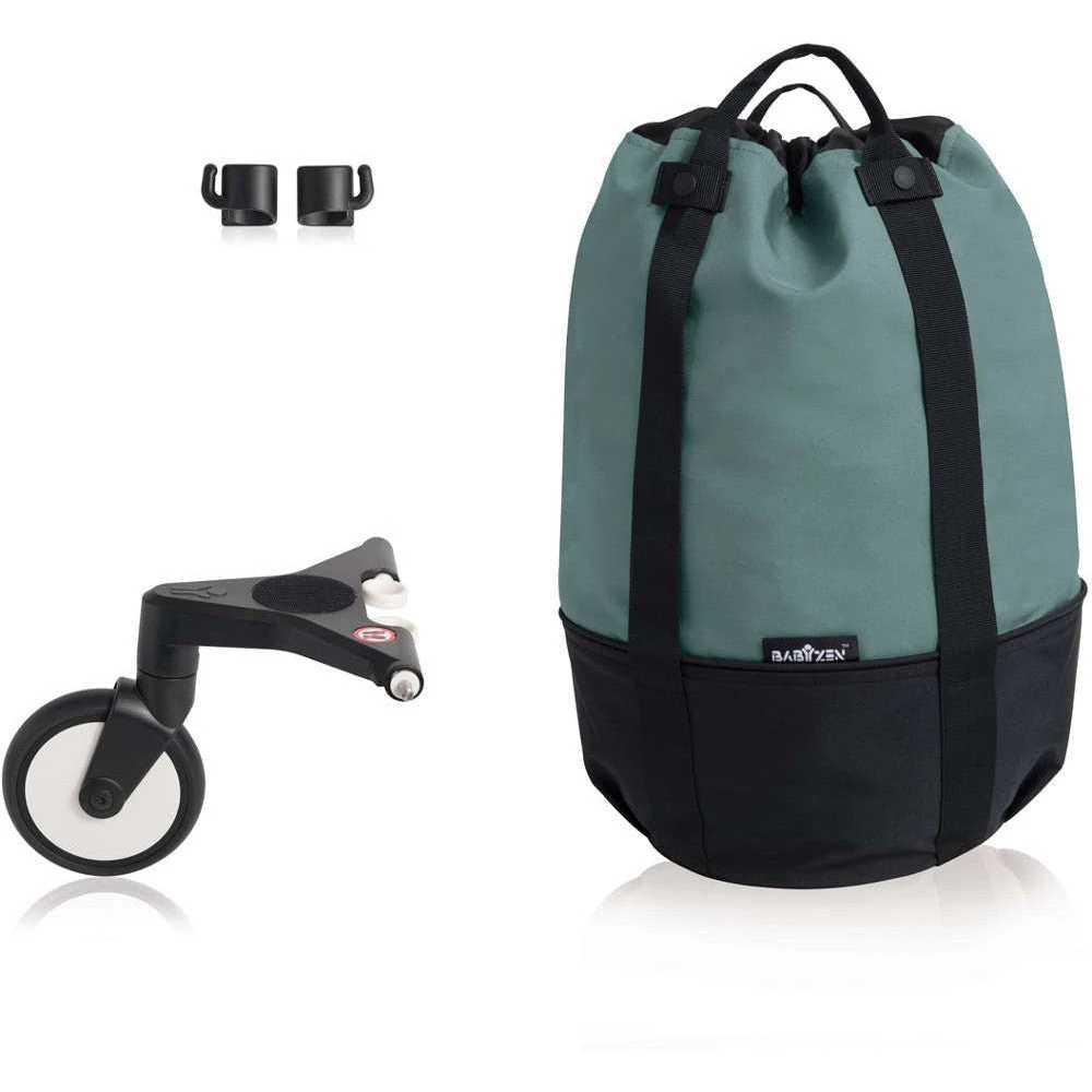 BABYZEN lightens your daily life with your YOYO² bag. The bag hooks onto the YOYO stroller in seconds and, thanks to its wheel, supports an additional 10 kg (22 lbs) without extra effort. Loaded with groceries or gear, your stroller remains maneuverable, light, completely stable, and continuously navigable with one hand. An end to those strollers that tip over under the weight of bags hanging from the handlebars!