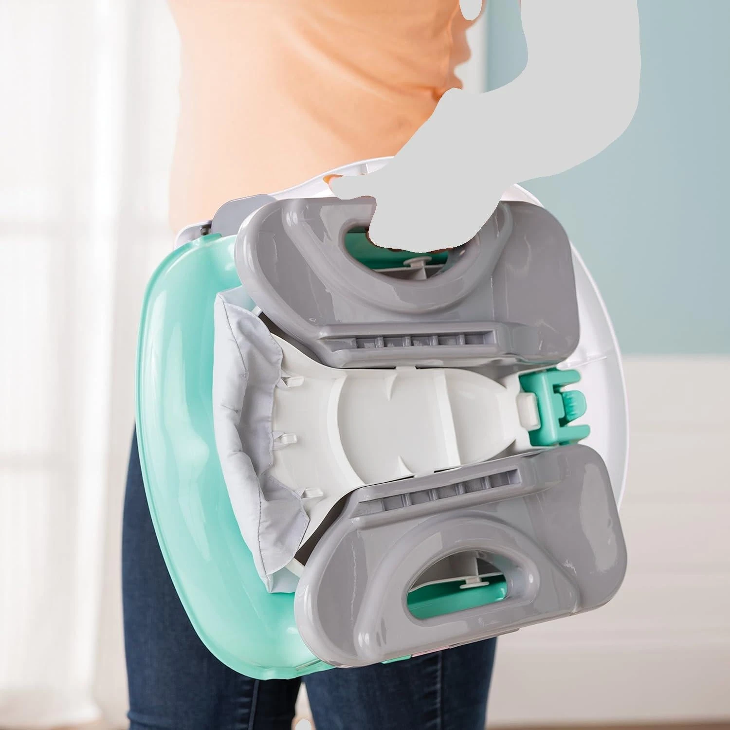 - 2-in-1 infant feeding seat with tray becomes a toddler booster seat at the table.