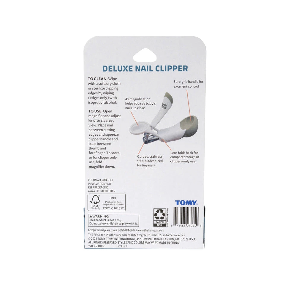 The First Years Deluxe Nail Clippers allows you to confidently care for your baby’s tiny nails. This baby fingernail clipper features a 4x magnifier that helps you easily see those little nails while clipping, reducing eyestrain. The lens folds back for compact storage or for clippers-only use. With precision stainless steel blades and an ergonomic sure-grip shape, this baby finger and toe nail trimmer is easy for parents to use, boasting curved blades that are perfectly sized for baby’s tiny nails.