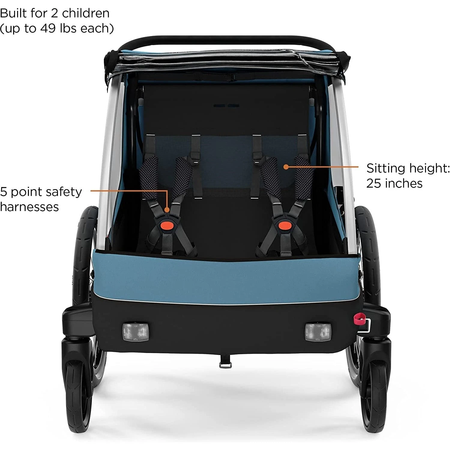 - Max child weight: 2×49 lbs.